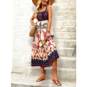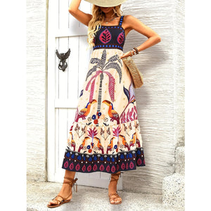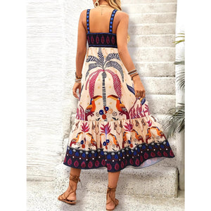 Printed Square Neck Midi Dress