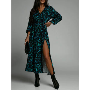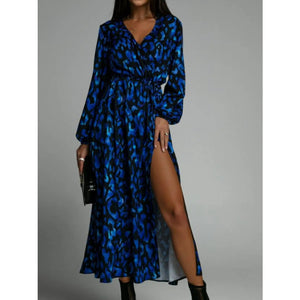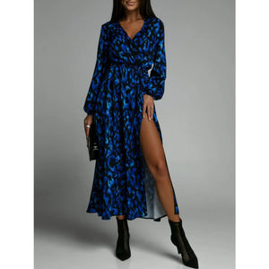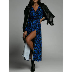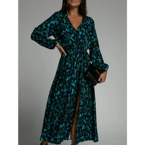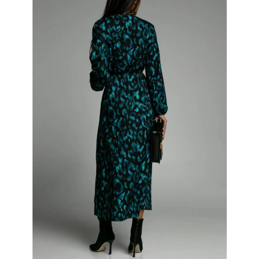 Printed Surplice Long Sleeve Midi Dress