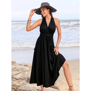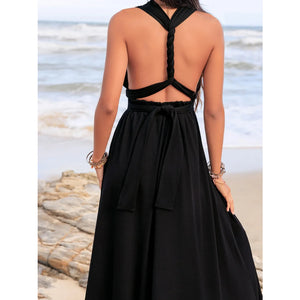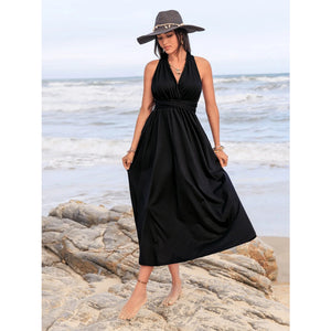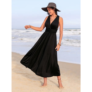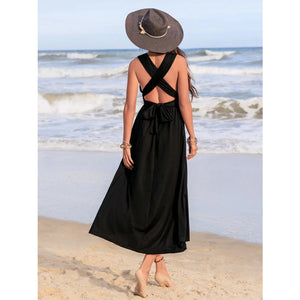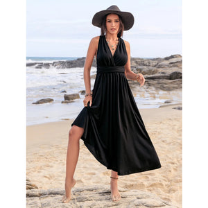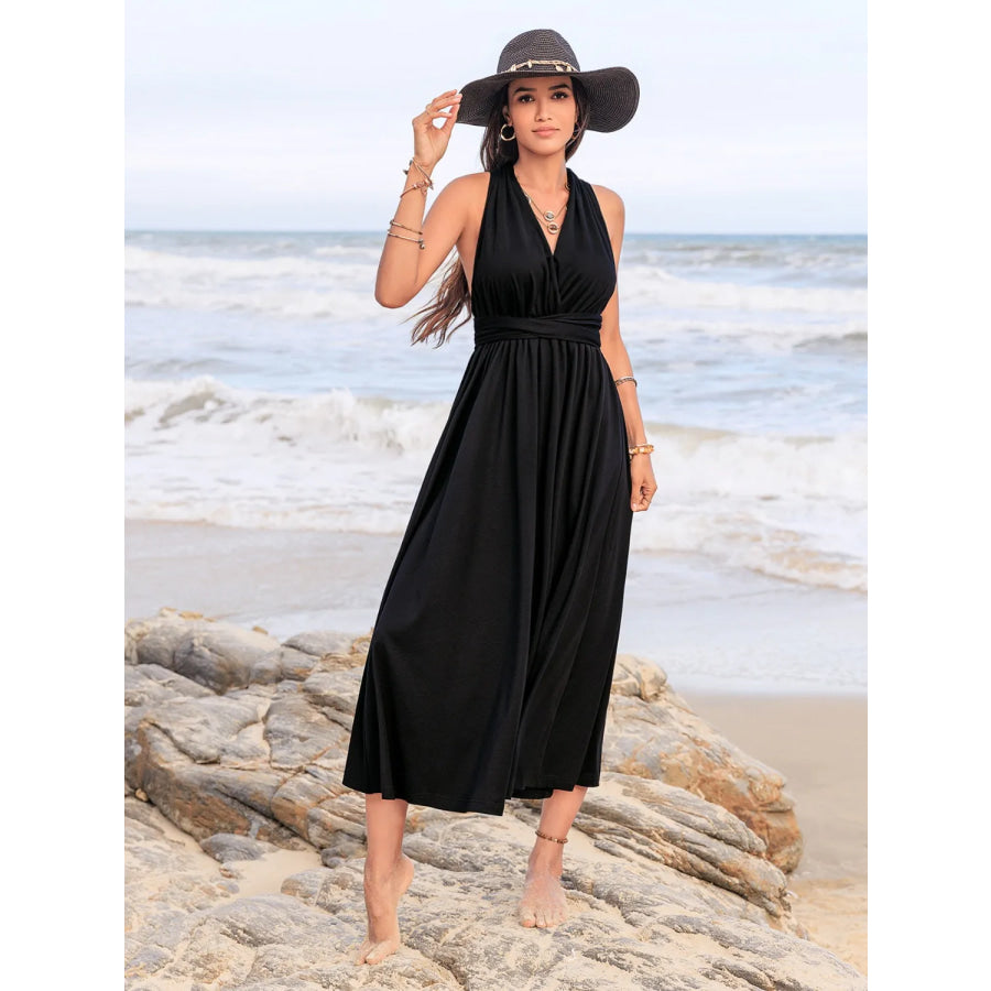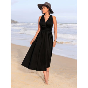 Surplice Sleeveless Ruched Midi Dress
