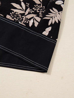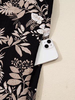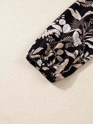 3/4 Sleeve Botanical Print Split Neck Loose Mini Dress