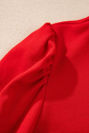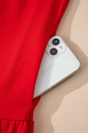 Contrast Striped Collar Patchwork Puff Sleeve Ruffle Hem Mini Dress