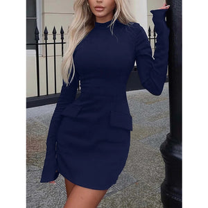 Long Sleeve Bodycon Mini Dress with Pockets