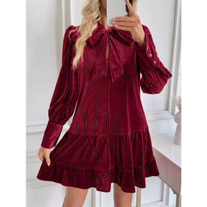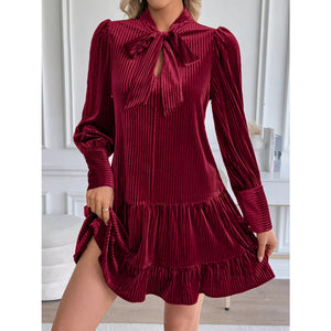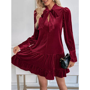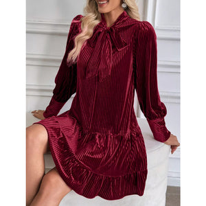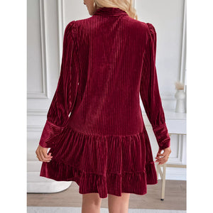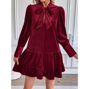 Velvet Tie Front Tiered Mini Dress