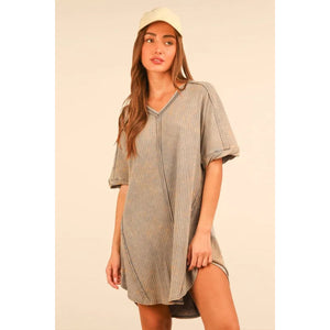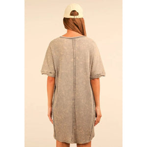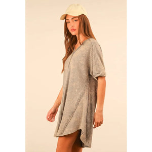 VERY J Plus Size Mineral Washed Ribbed Knit Mini Dress