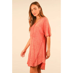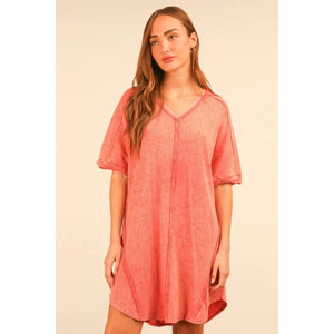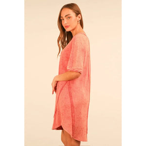 VERY J Plus Size Mineral Washed Ribbed Knit Mini Dress