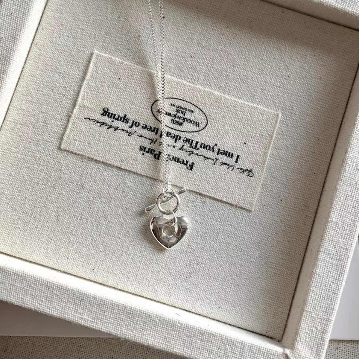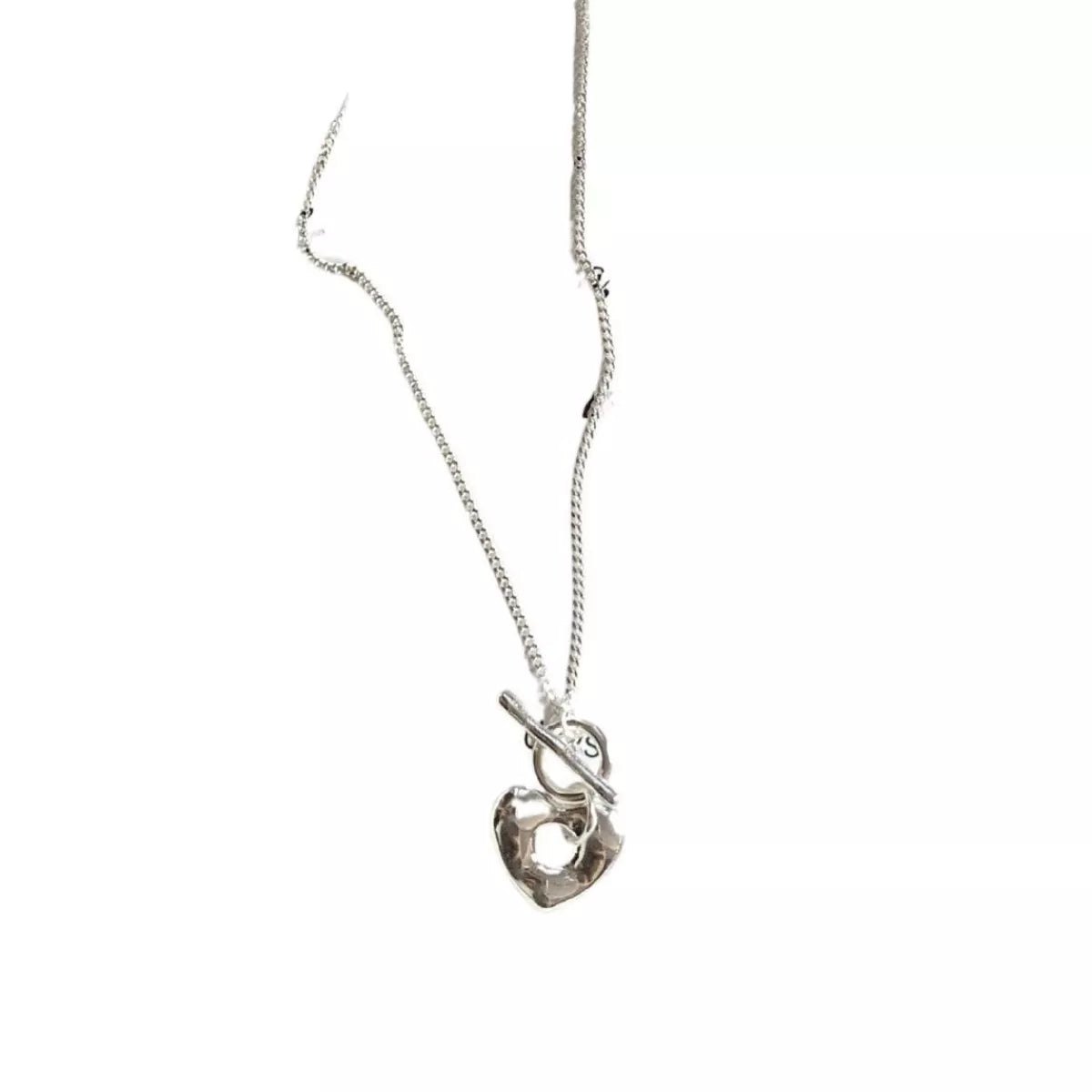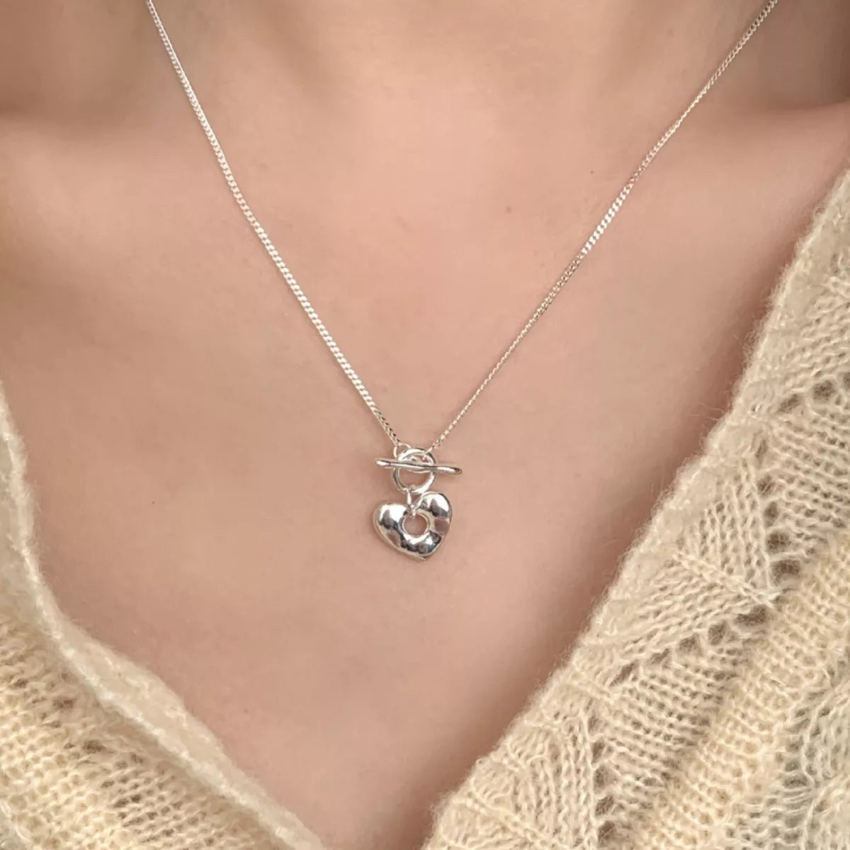 925 Sterling Silver Heart Toggle Clasp Necklace