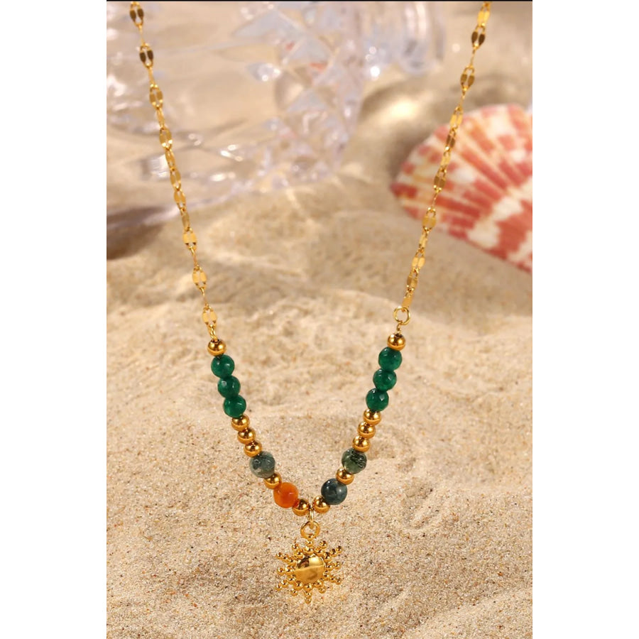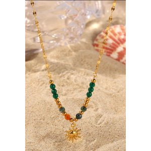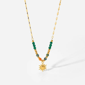 Bohemian Sun Charm Beaded Stainless Steel Necklace