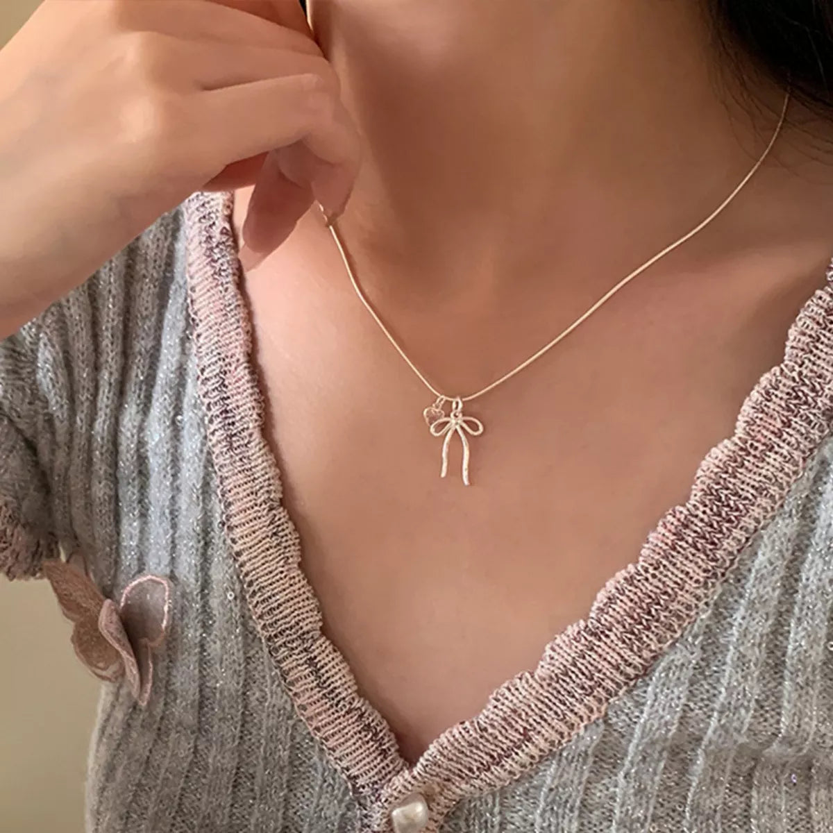 Bow & Heart Pendant Necklace