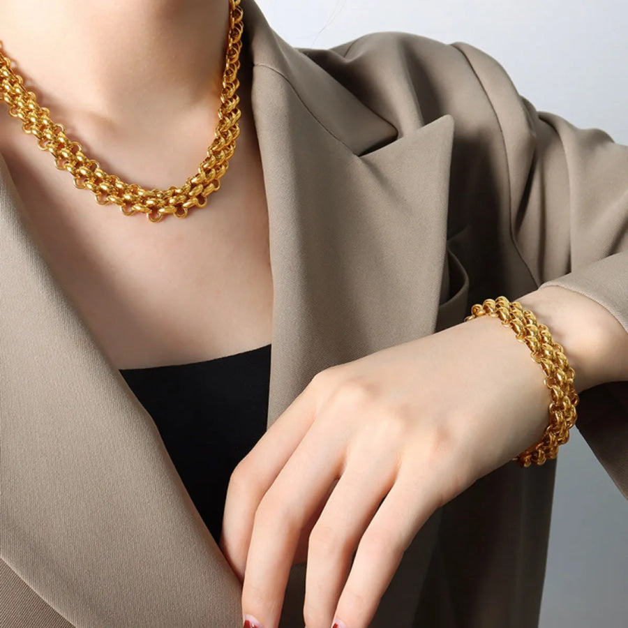 Gold Chain Link Jewelry Set with Necklace and Bracelet