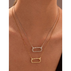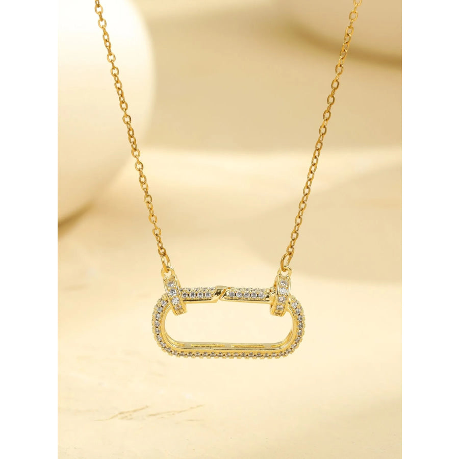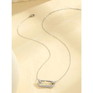 Stainless Steel Zircon Rectangle Pendant Necklace