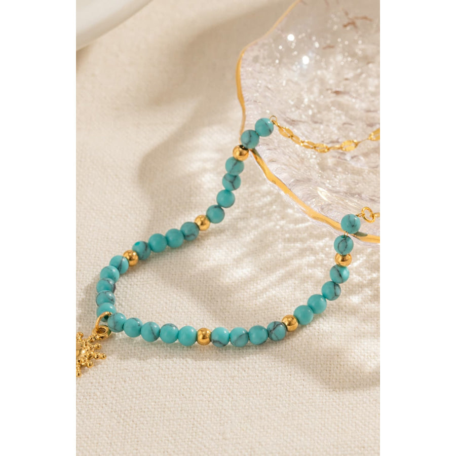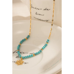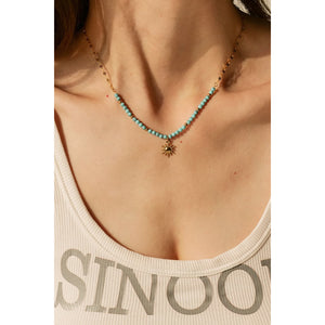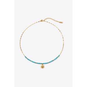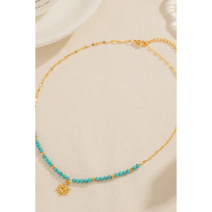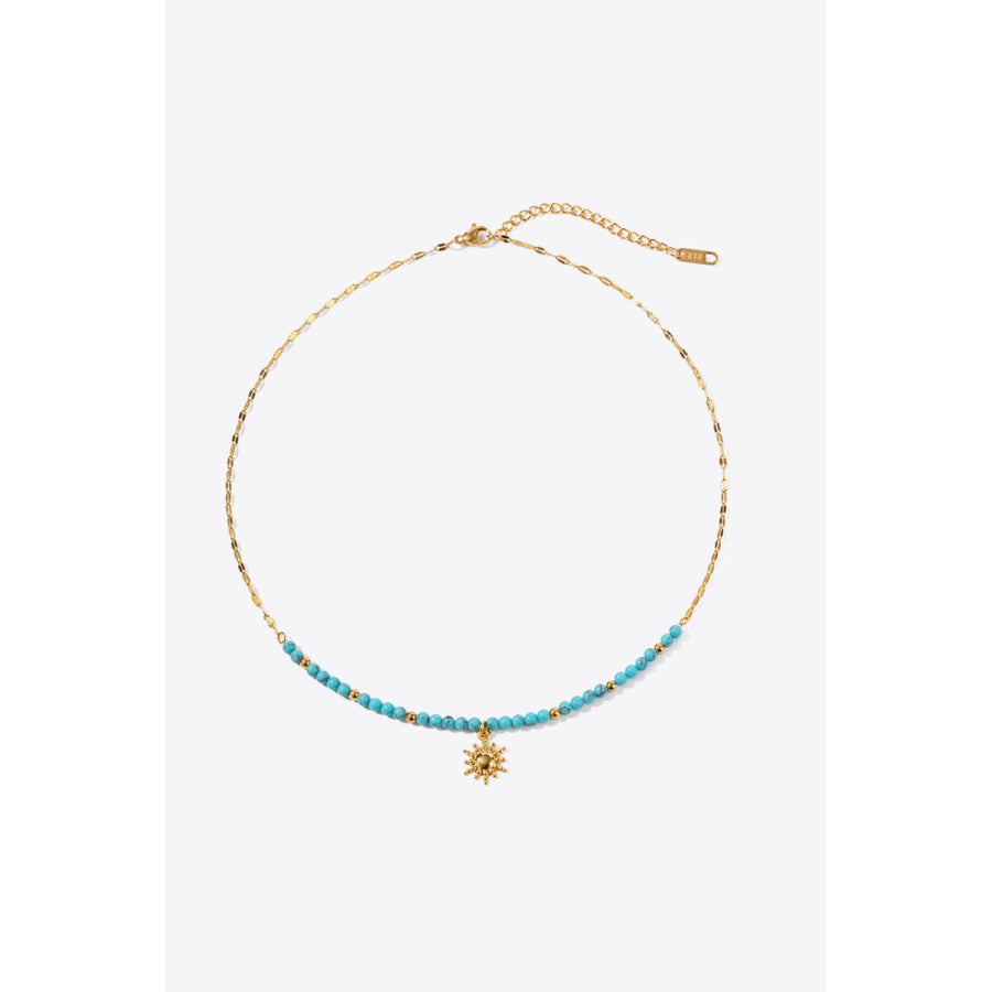 Turquoise Beaded 18K Gold-Plated Sun Shape Pendant Necklace