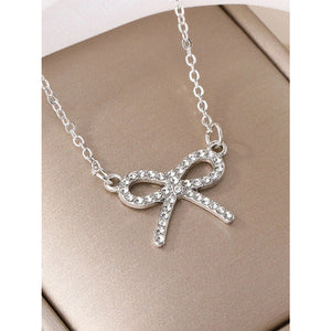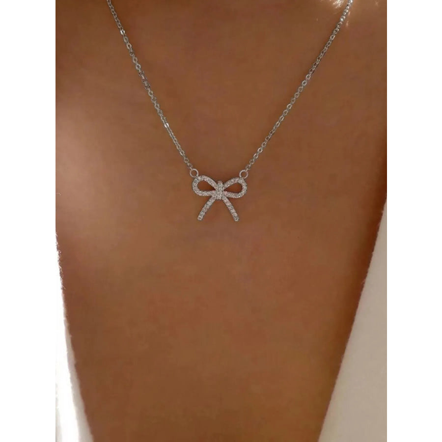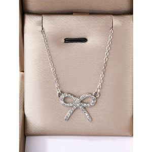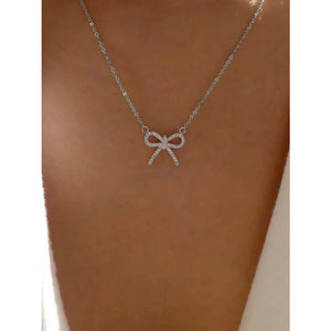 This stunning Zircon Bow Pendant Necklace features a charming bow-shaped pendant adorned with sparkling cubic zirconia stones that catch and reflect light beautifully. Crafted with high-quality materials, the pendant hangs gracefully from a delicate silver-toned chain that complements any neckline. The elegant bow design symbolizes femininity and grace, making it perfect for both everyday wear and special occasions. The adjustable chain ensures a comfortable fit, while the hypoallergenic construction makes it suitable for sensitive skin. This timeless piece combines classic elegance with modern sparkle, making it an ideal accessory for fashion-conscious women who appreciate refined jewelry with romantic charm.