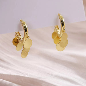 18K Gold-Plated Drop Hoop Earrings with Dangling Disc Charms