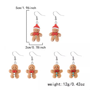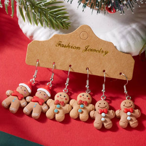 3 Piece Christmas Gingerbread Man Drop Earrings