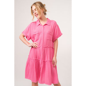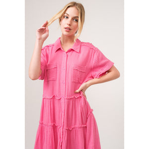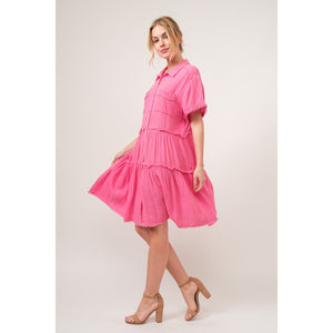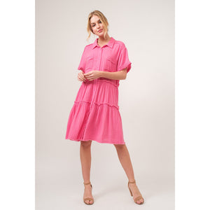 And The Why Full Size Raw Edge Washed Tiered Shirt Dress