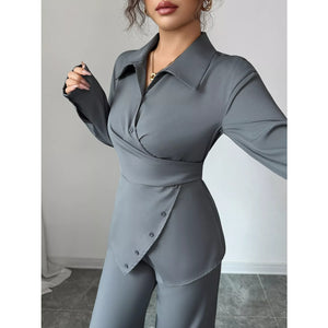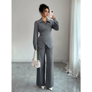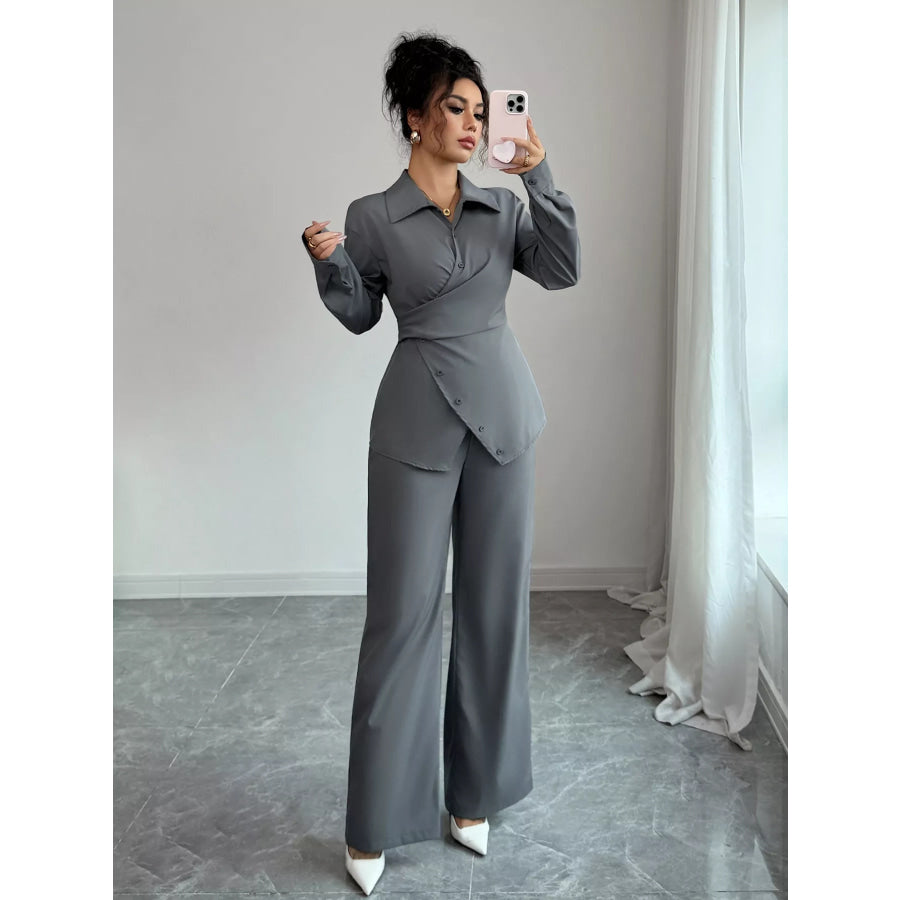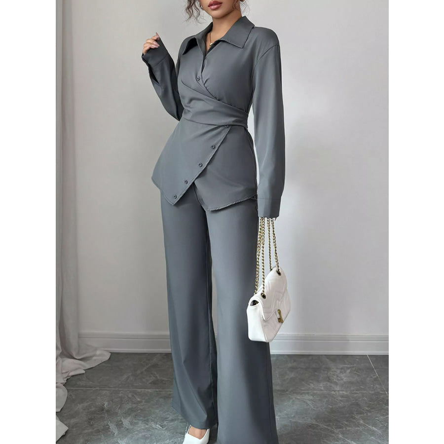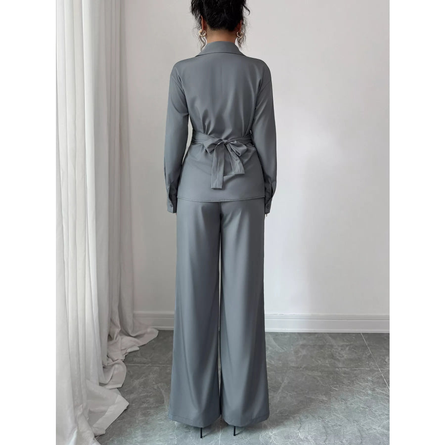 Back Tie Wrap Blazer and Wide Leg Pants Set
