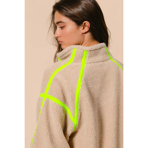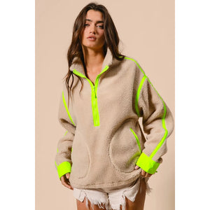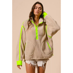 BiBi Contrast Edge Half Zip Up Sherpa Jacket