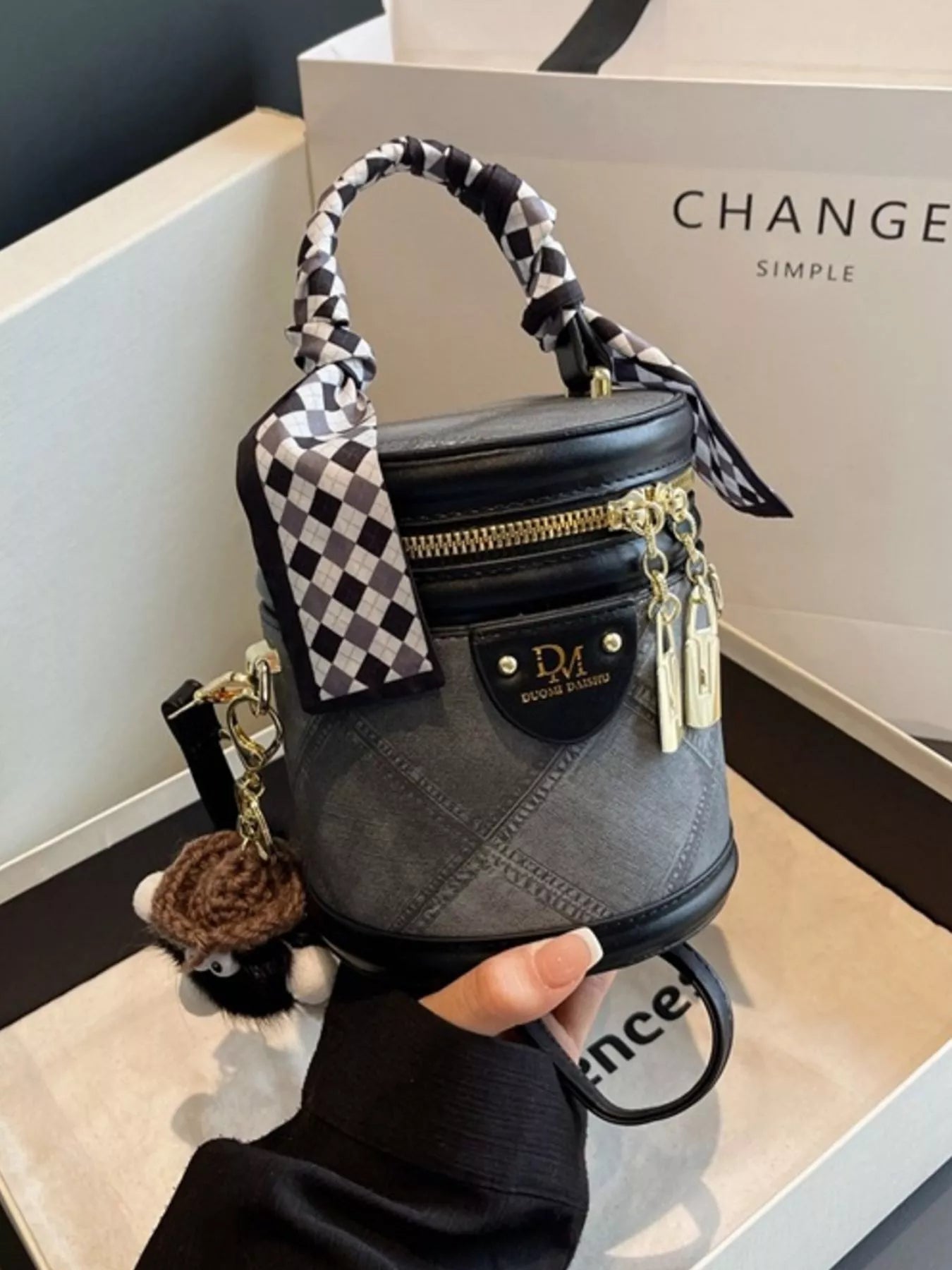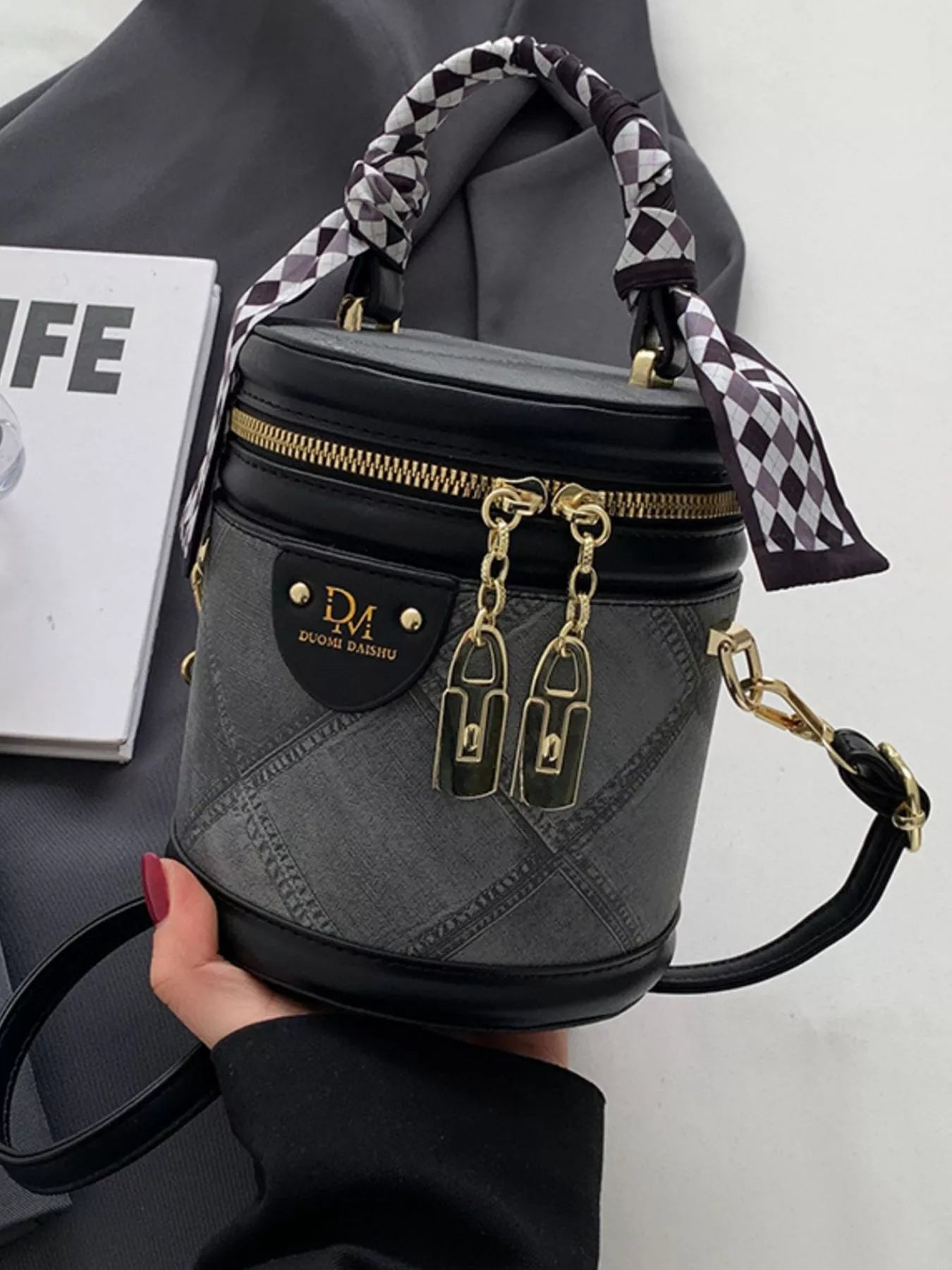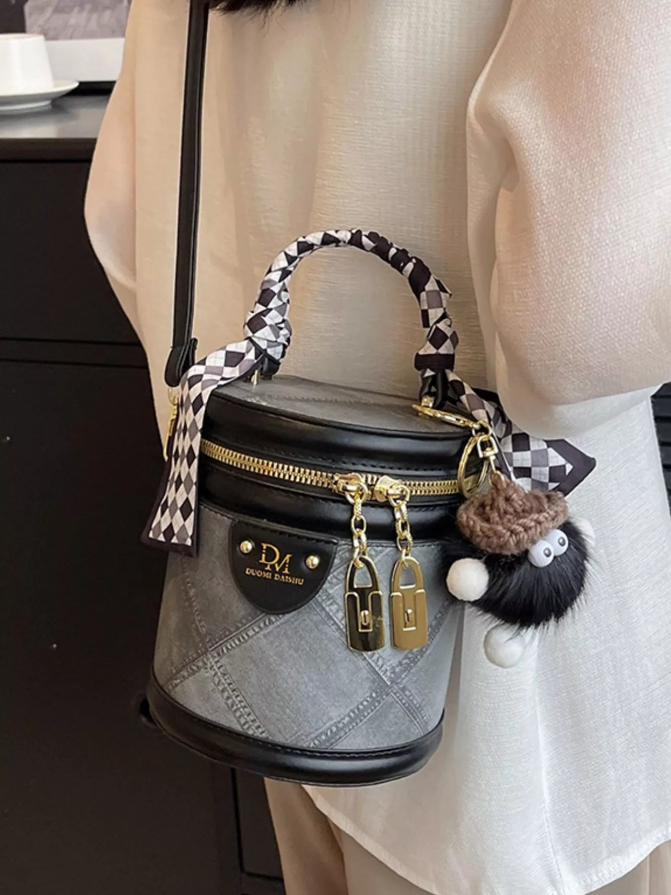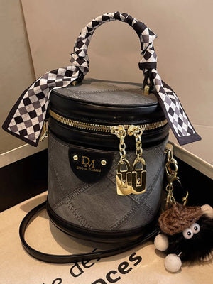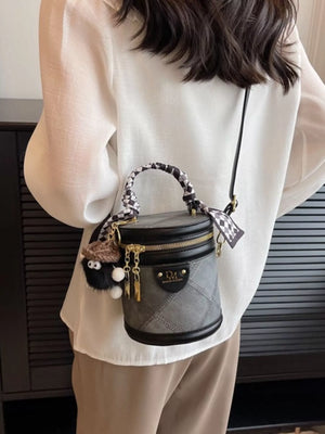 Bucket Crossbody Bag with Scarf Accent