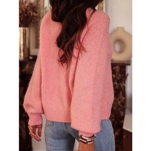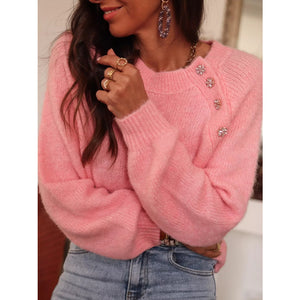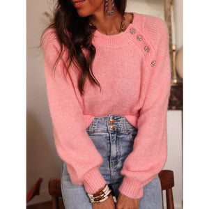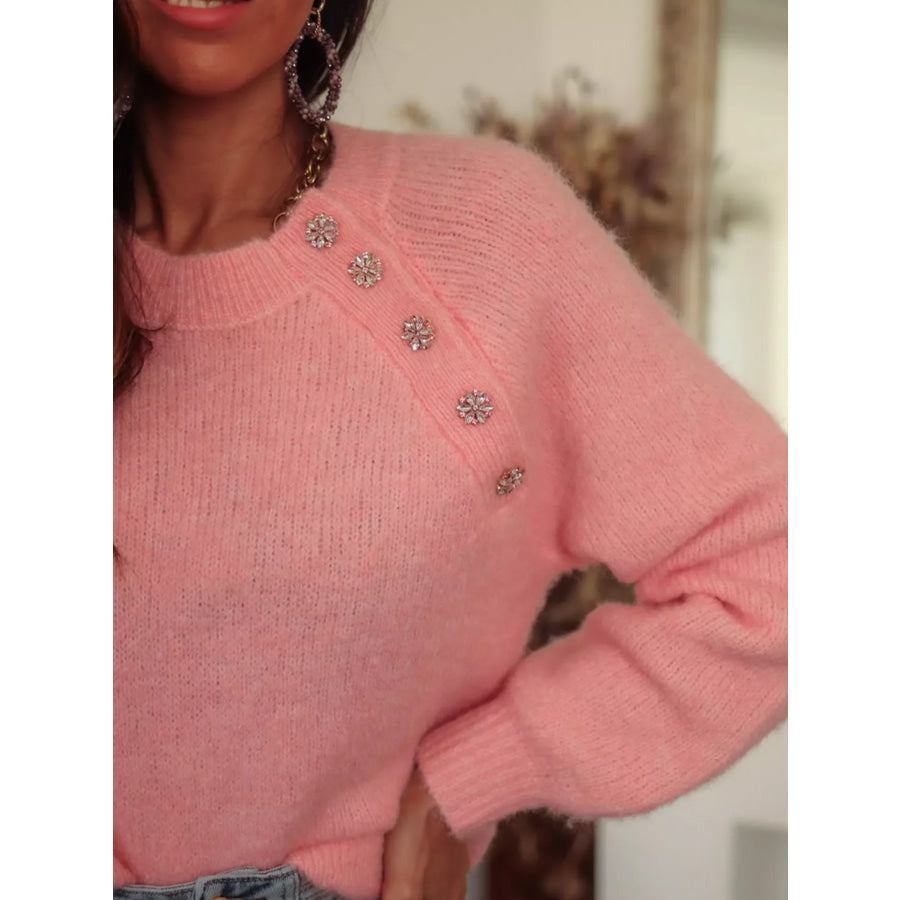 Button Detail Ribbed Hem Sweater
