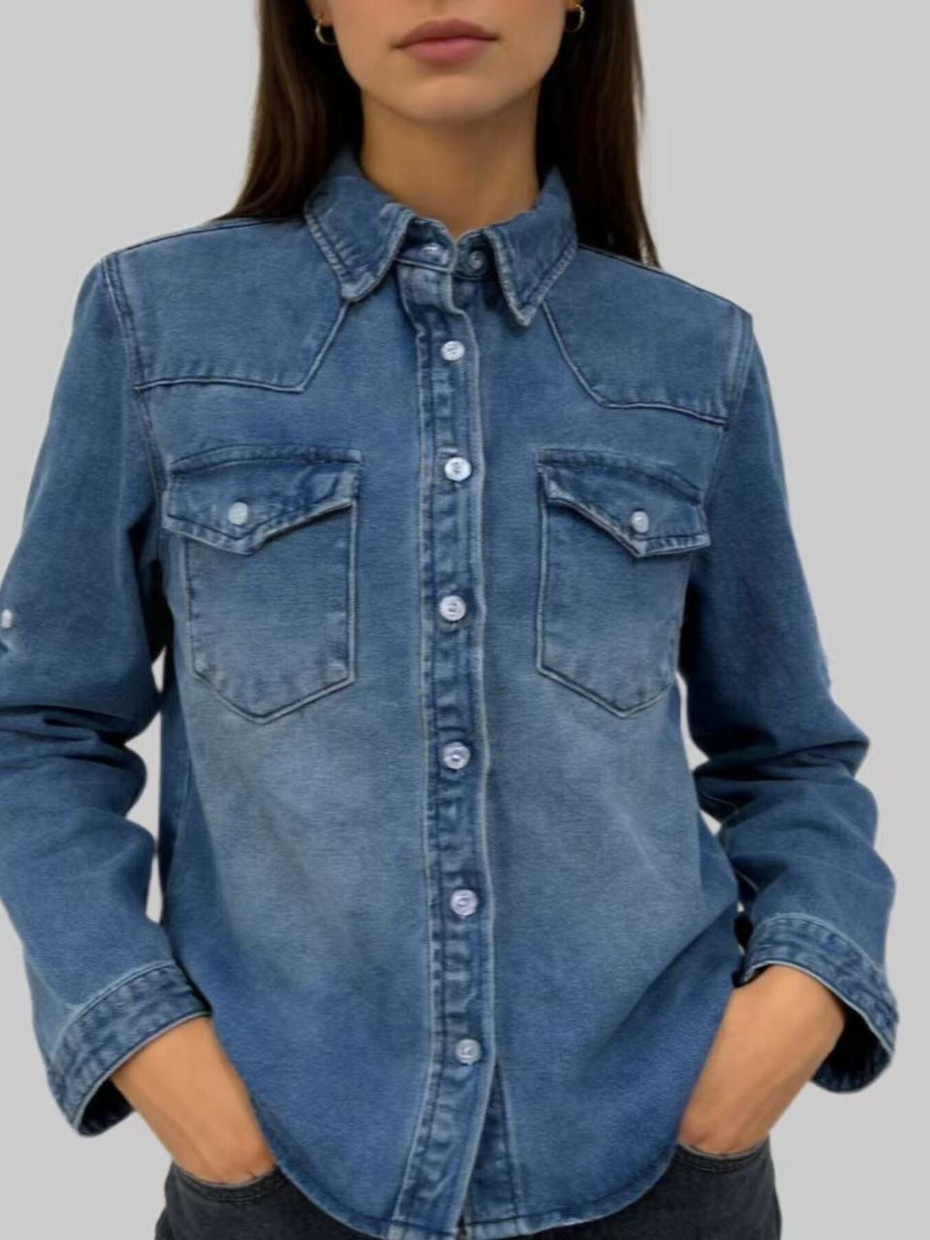 Button Down Classic Western Style Denim Top