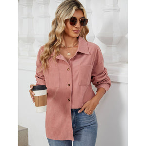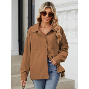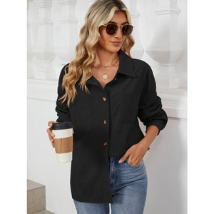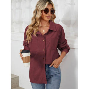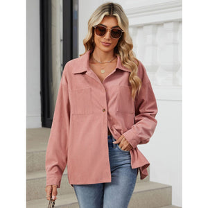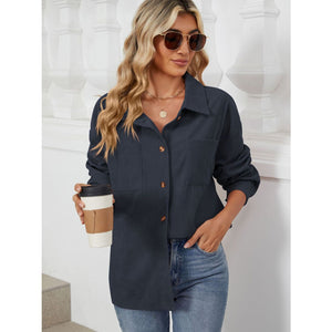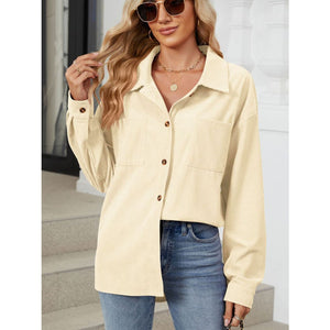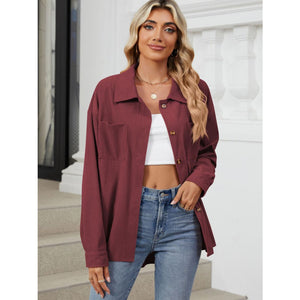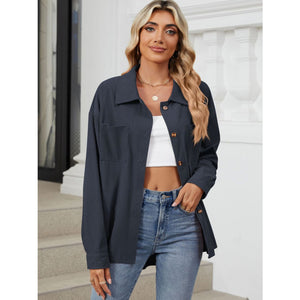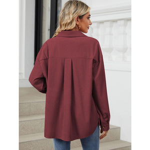 Button Up Dropped Shoulder Long Sleeve Outerwear