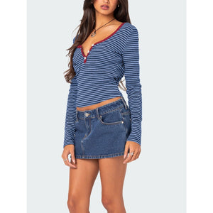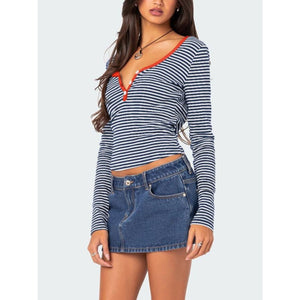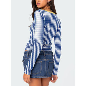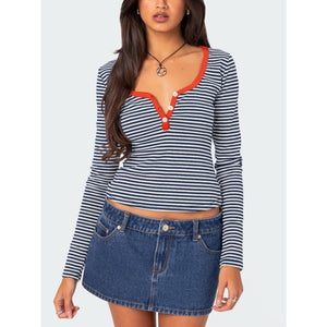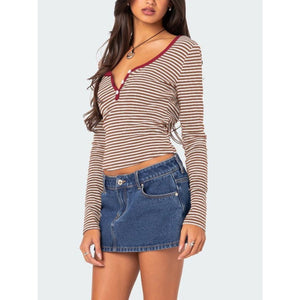 Buttoned Striped Long Sleeve T-Shirt