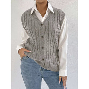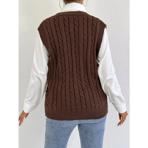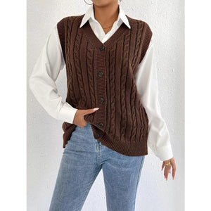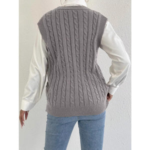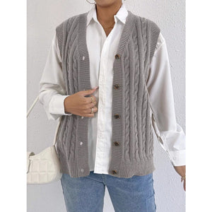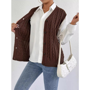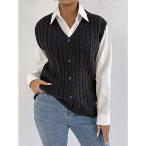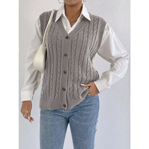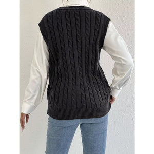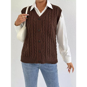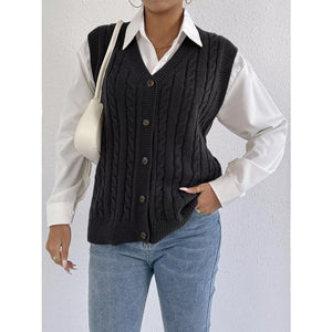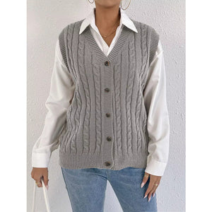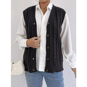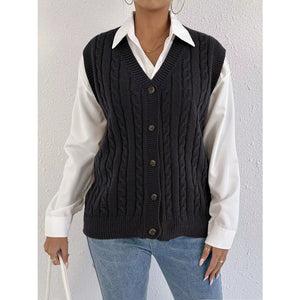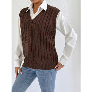 Cable-Knit Button-Up Sweater Vest
