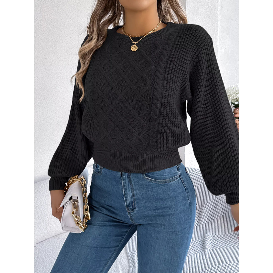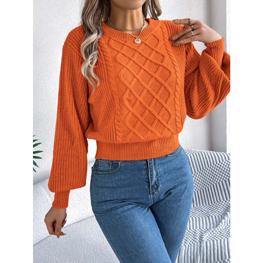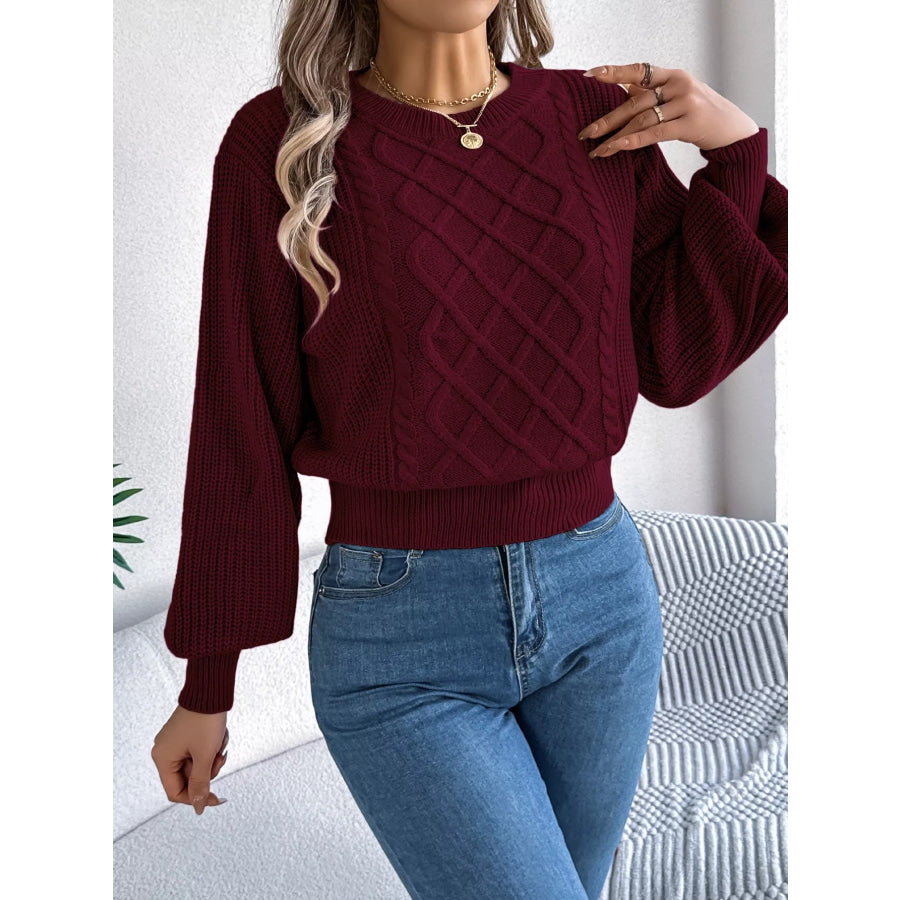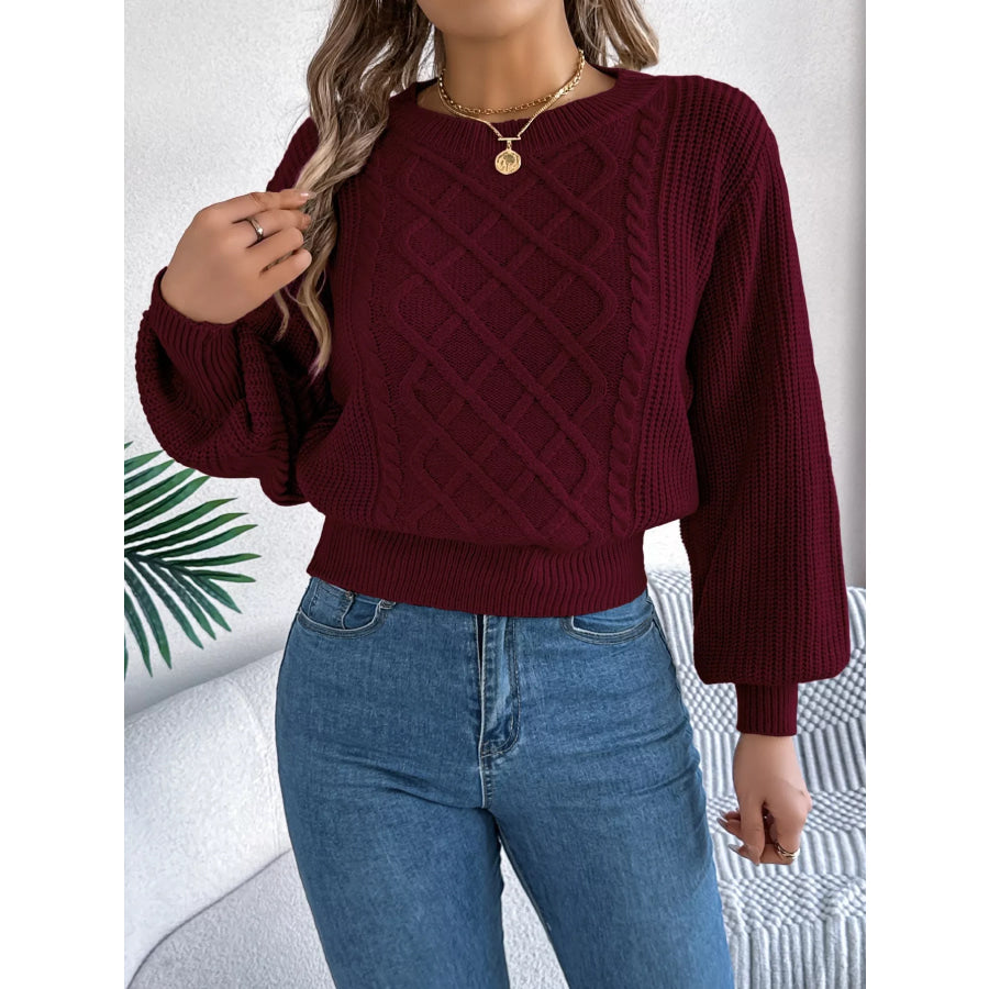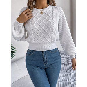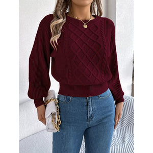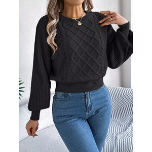 Cable Knit Diamond Pattern Long Sleeve Sweater