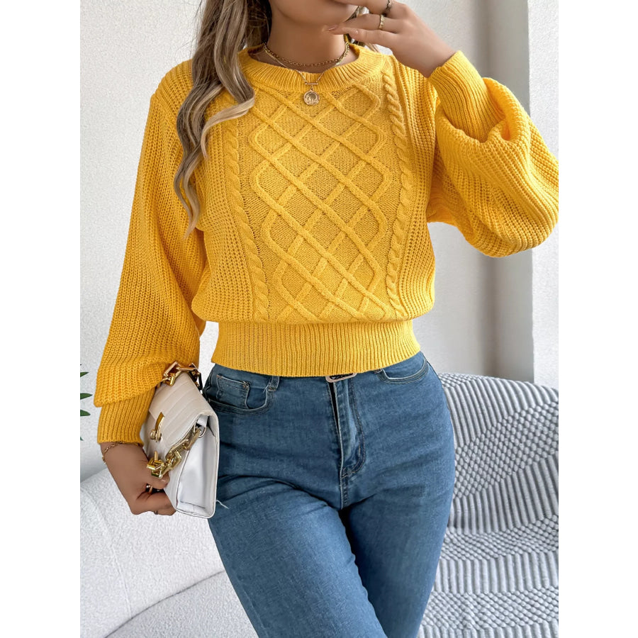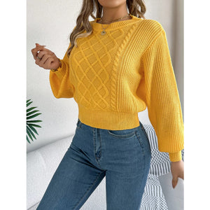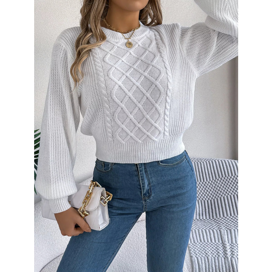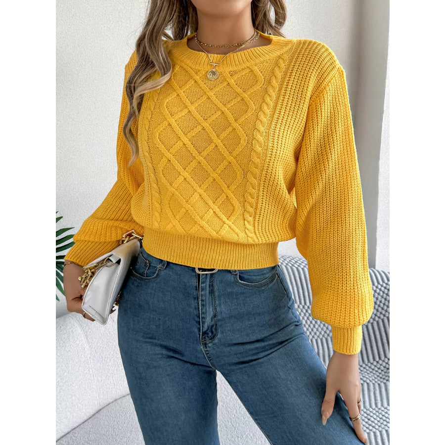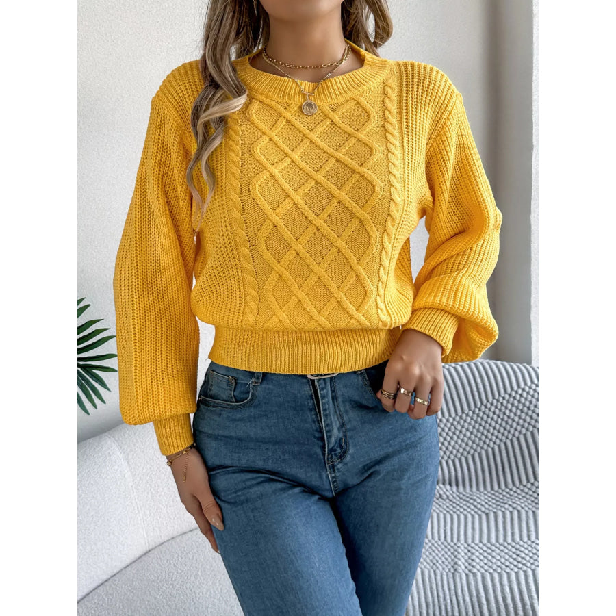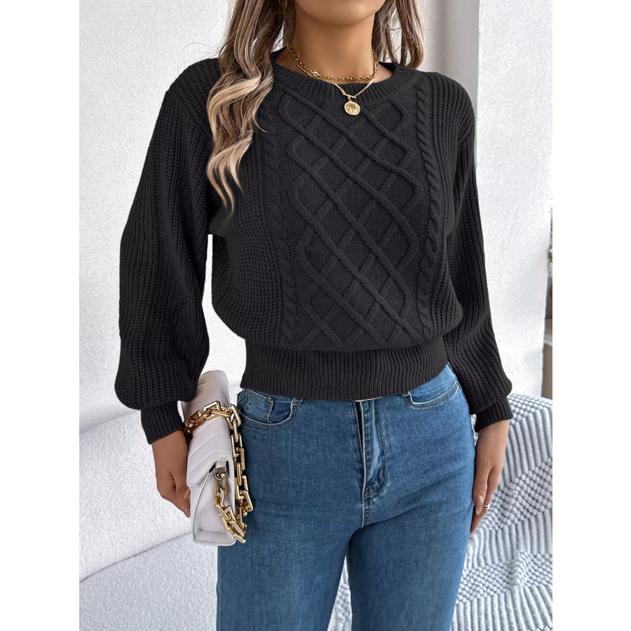 Cable Knit Diamond Pattern Long Sleeve Sweater