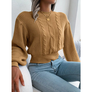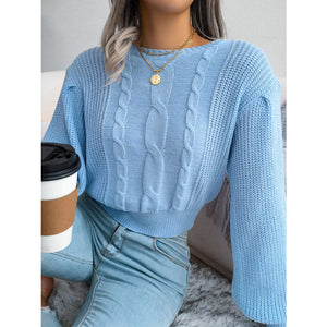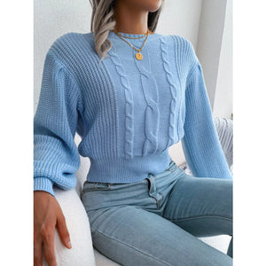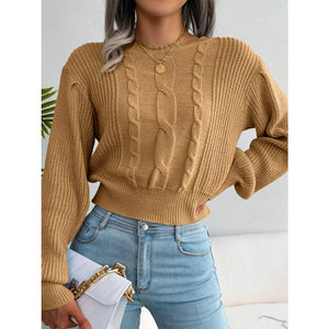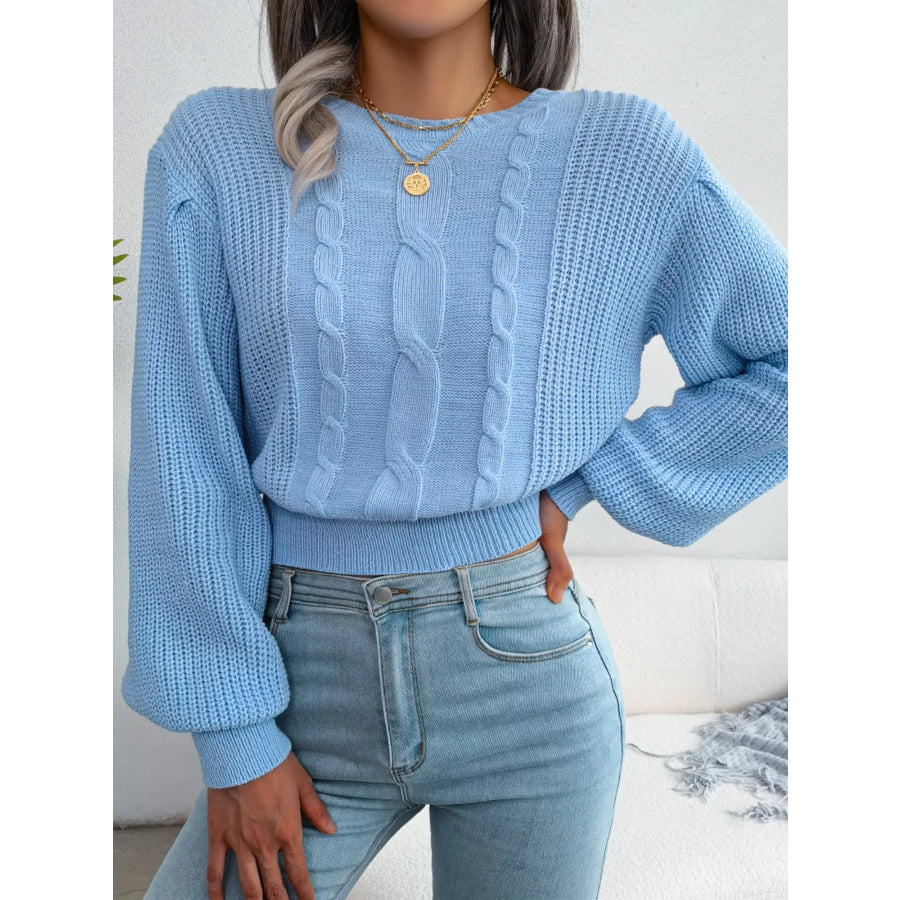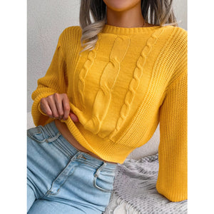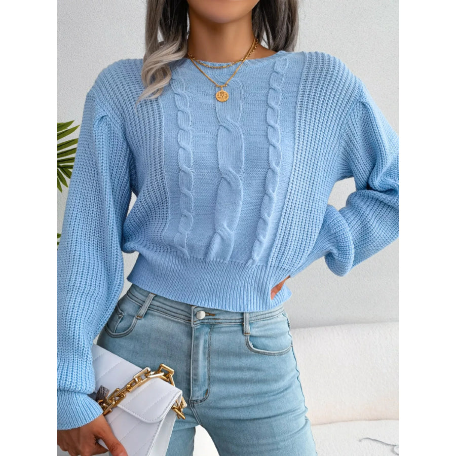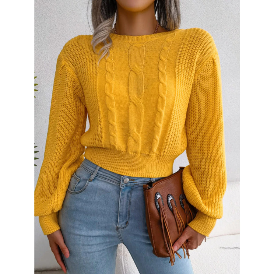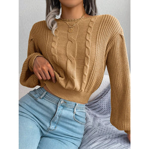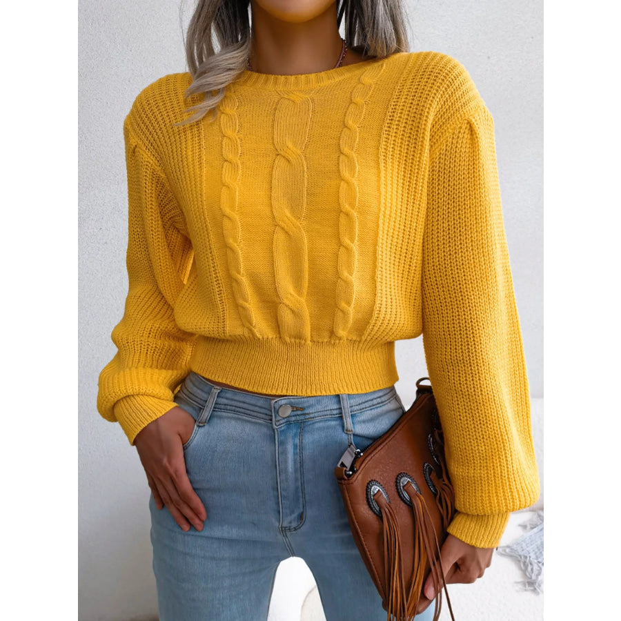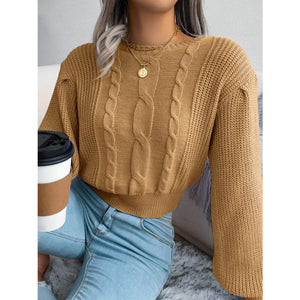 Cable Knit Round Neck Cropped Sweater