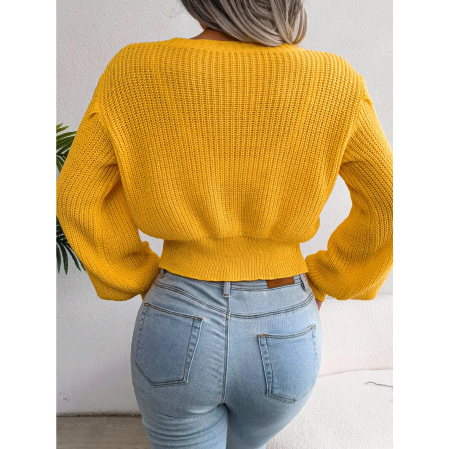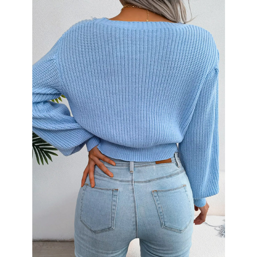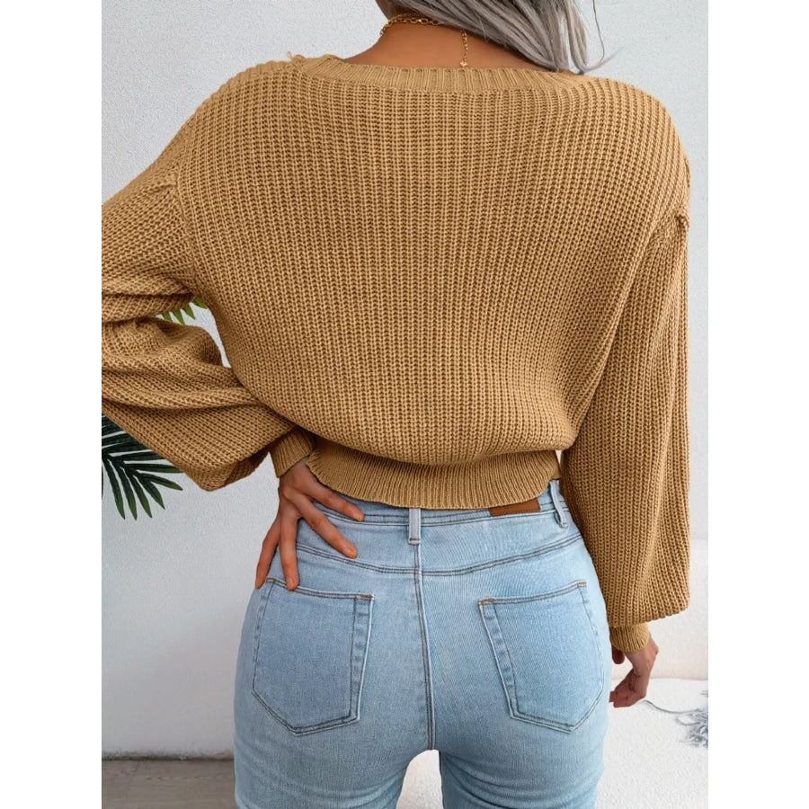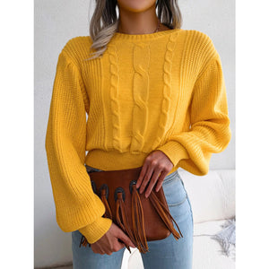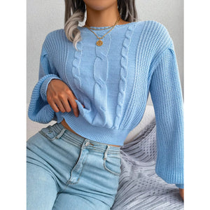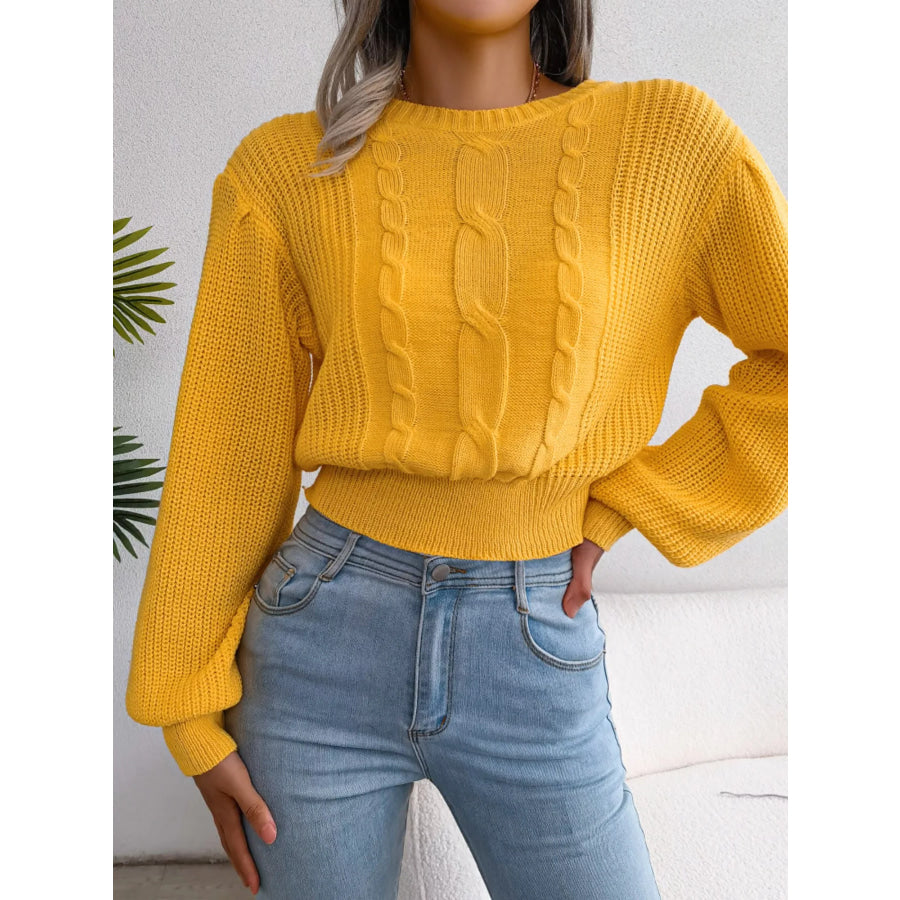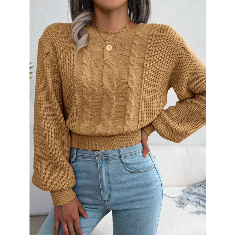 Cable Knit Round Neck Cropped Sweater