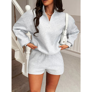 Casual Dropped Shoulder Sweatshirt and Shorts Set