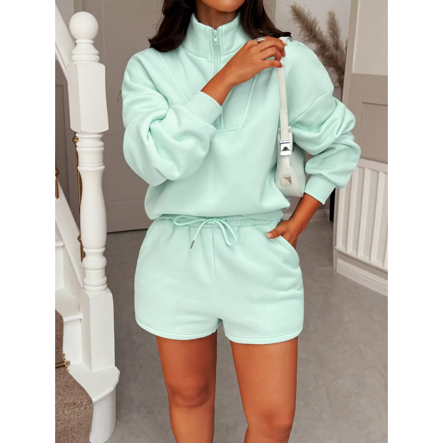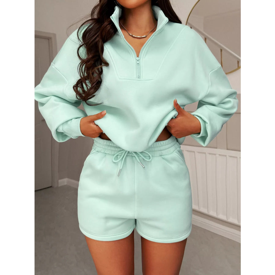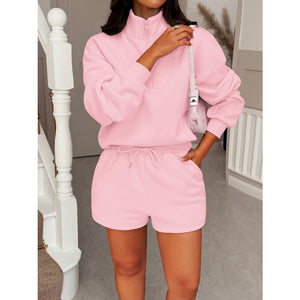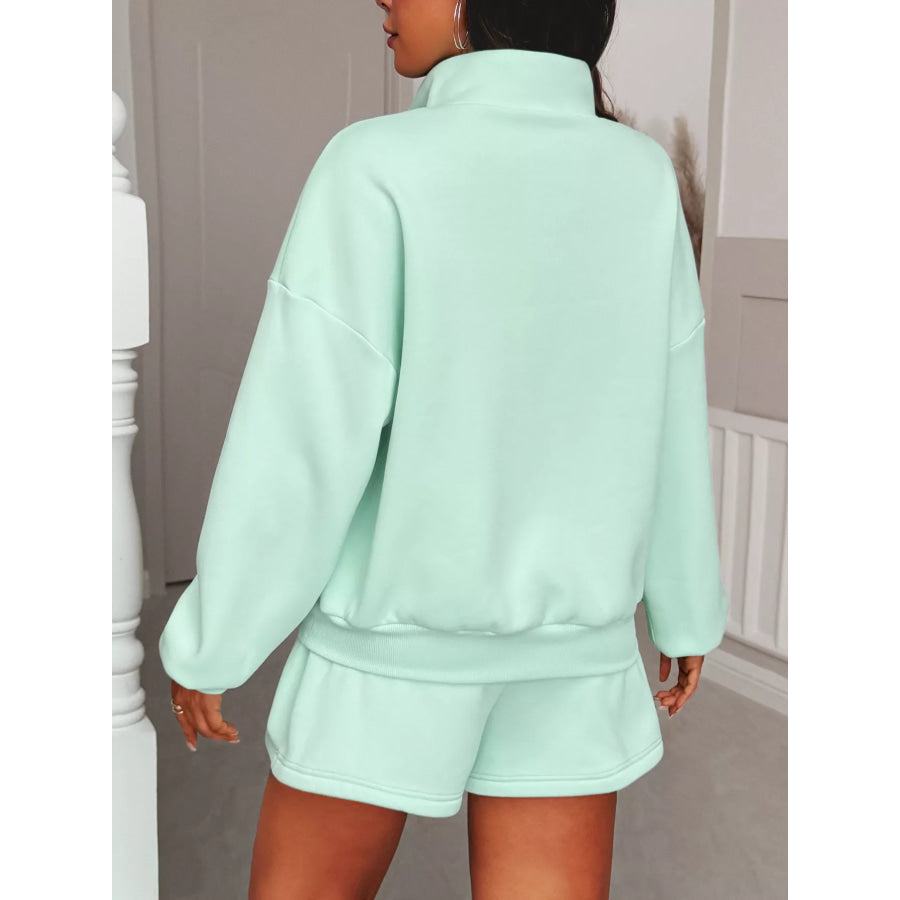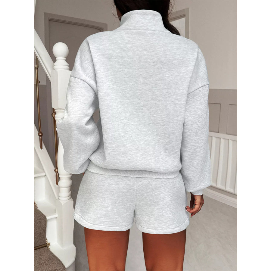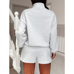 Casual Dropped Shoulder Sweatshirt and Shorts Set