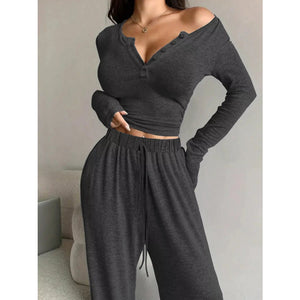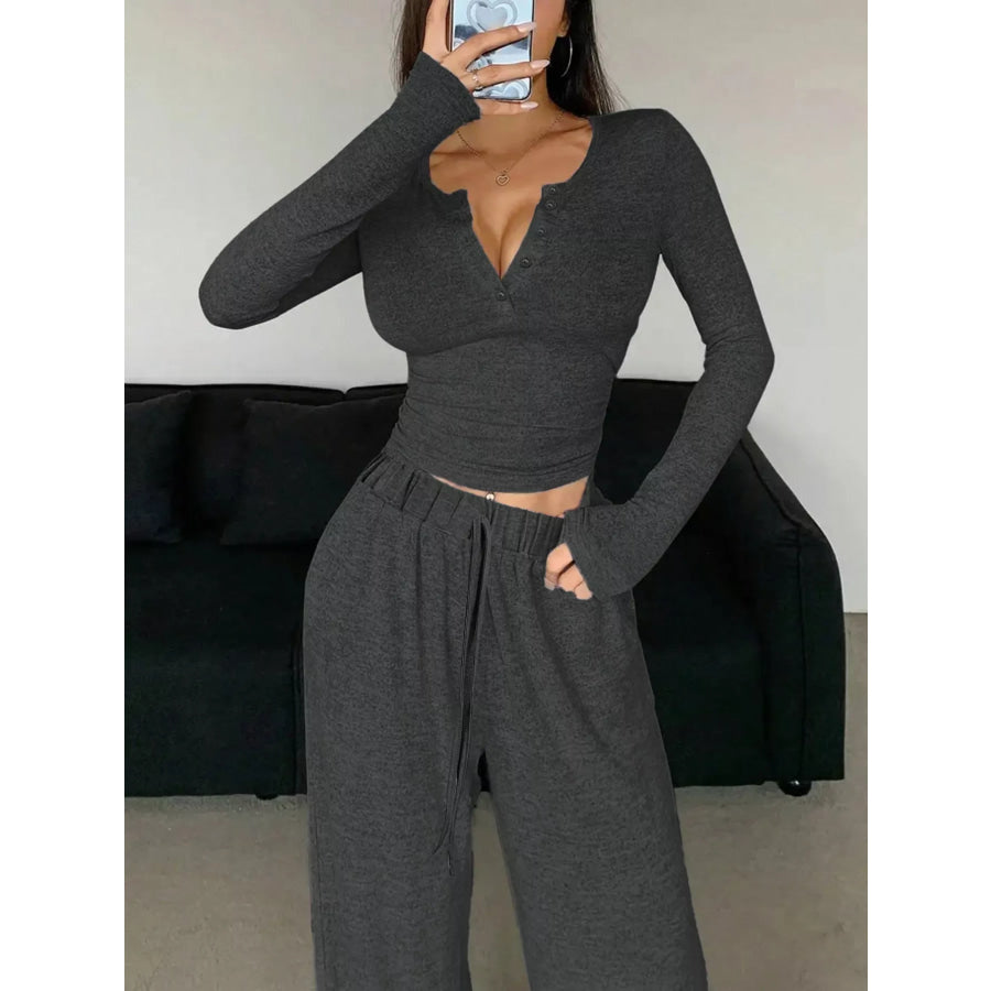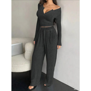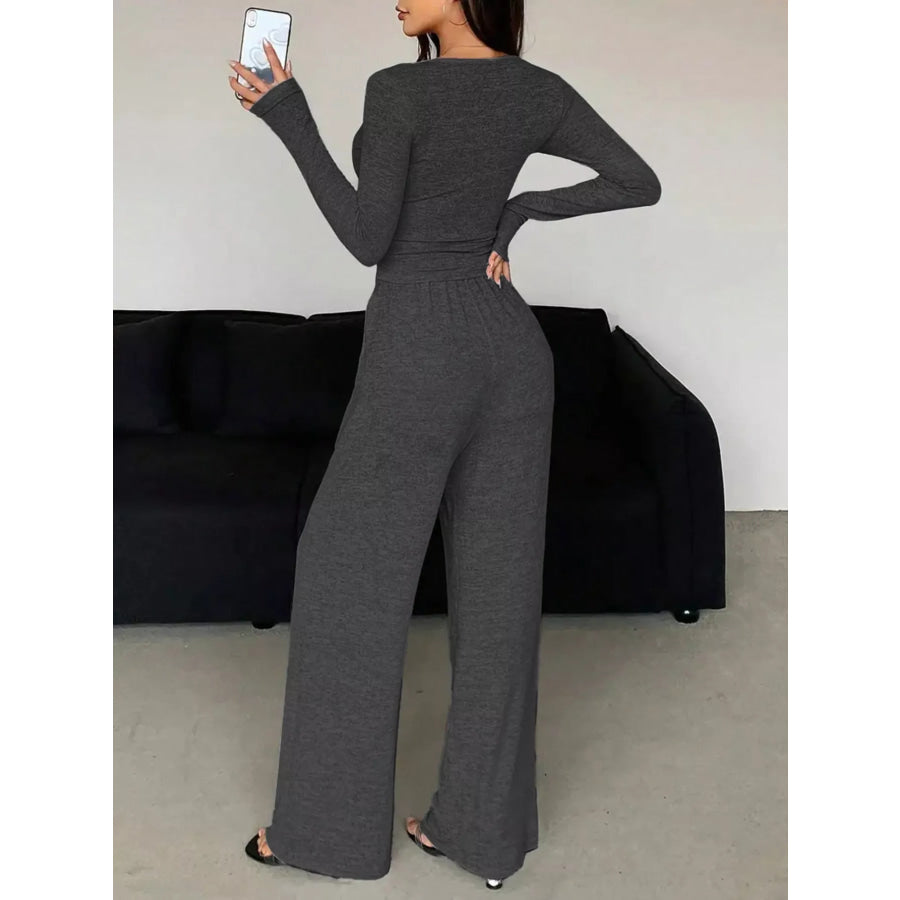 Casual Long Sleeve Top and Wide Leg Pants Set