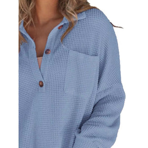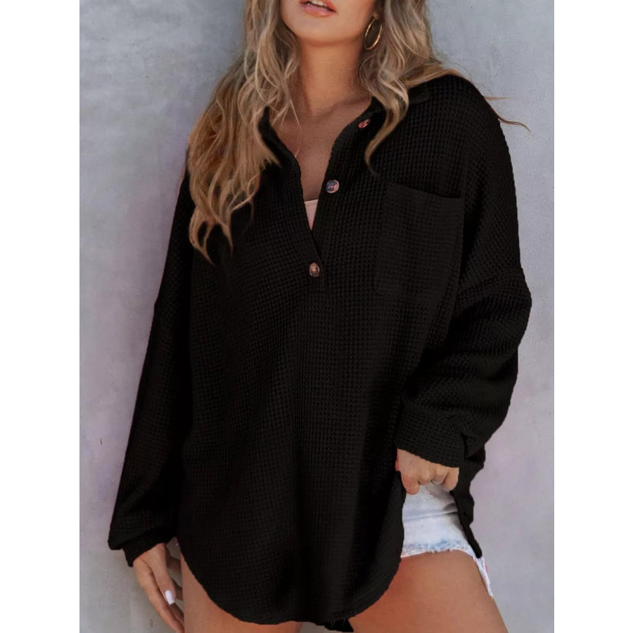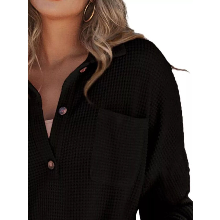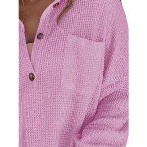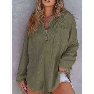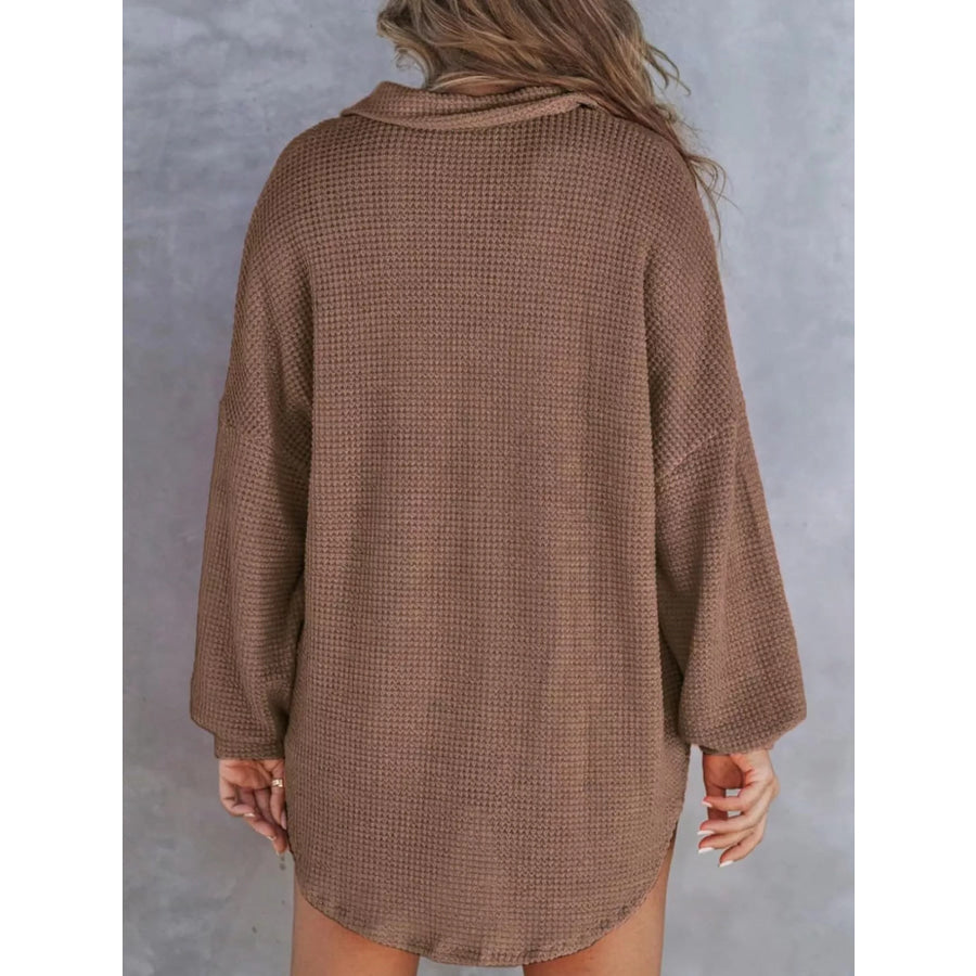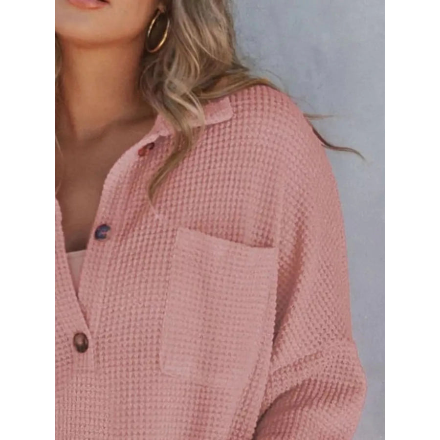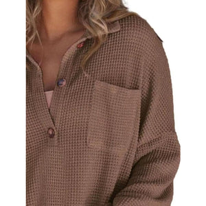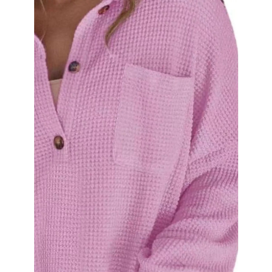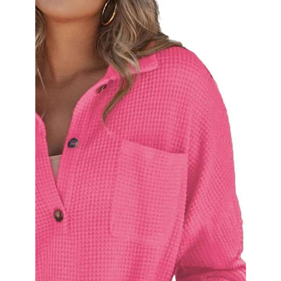 • Features:Waffle-Knit,Buttoned,Pocketed,Oversized