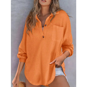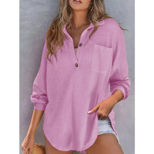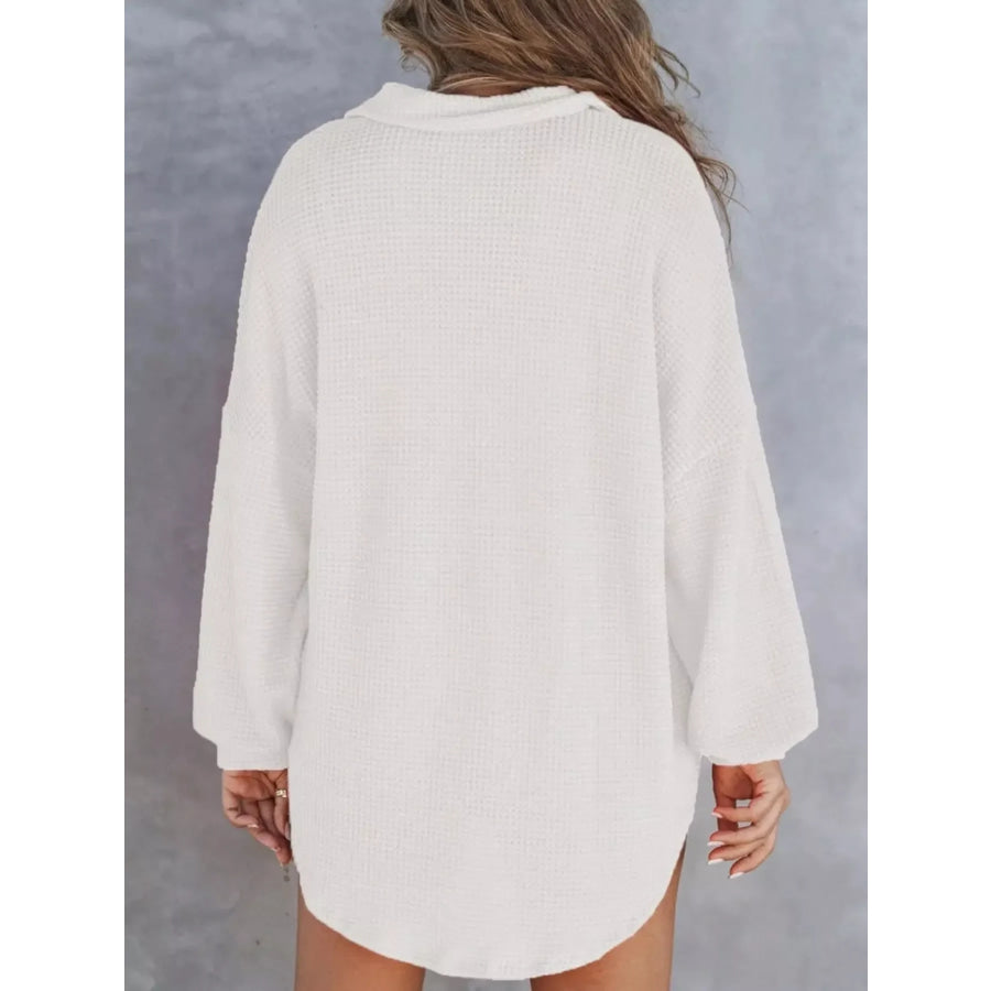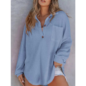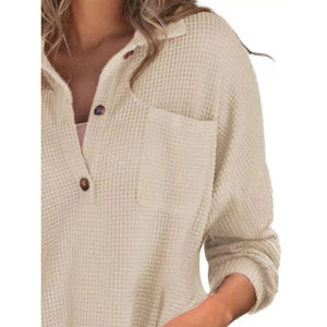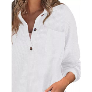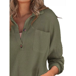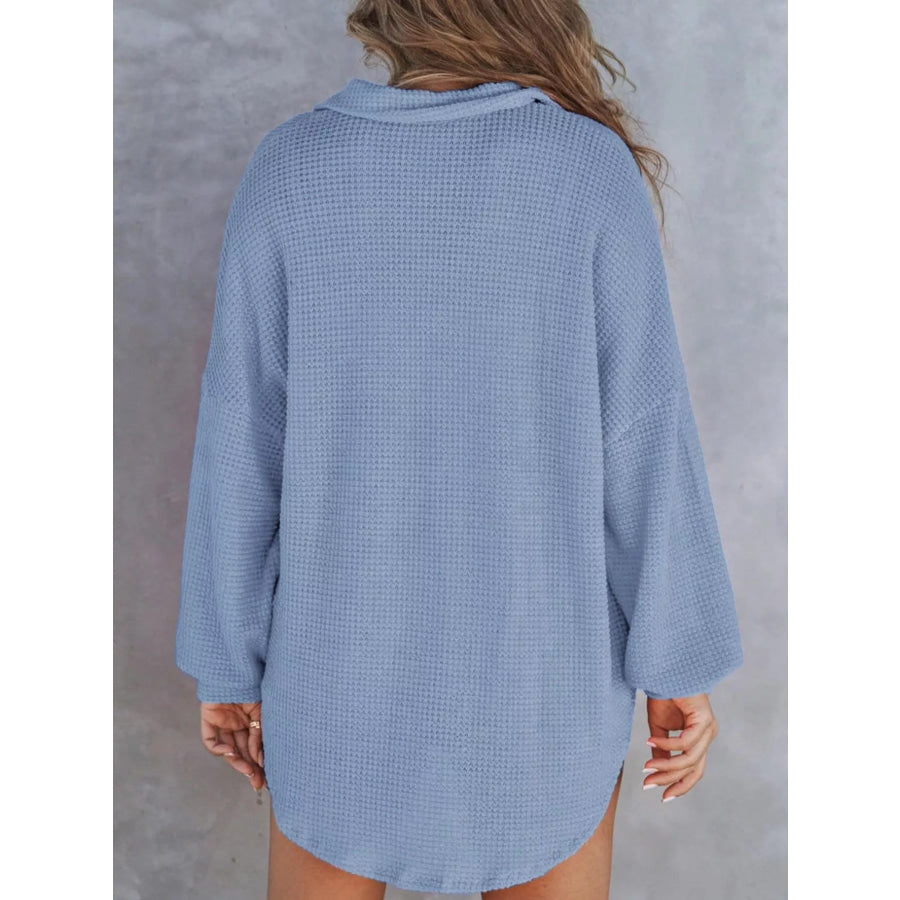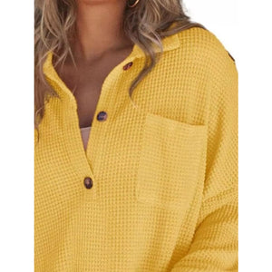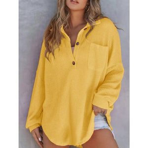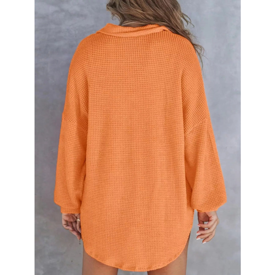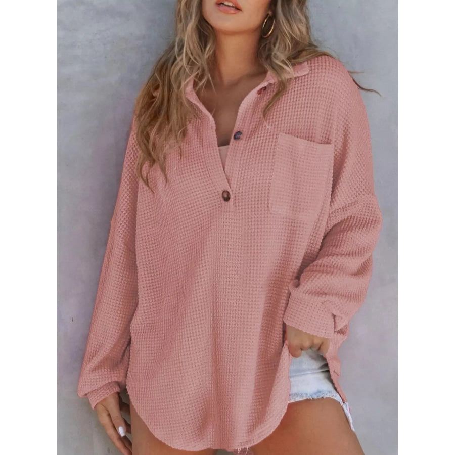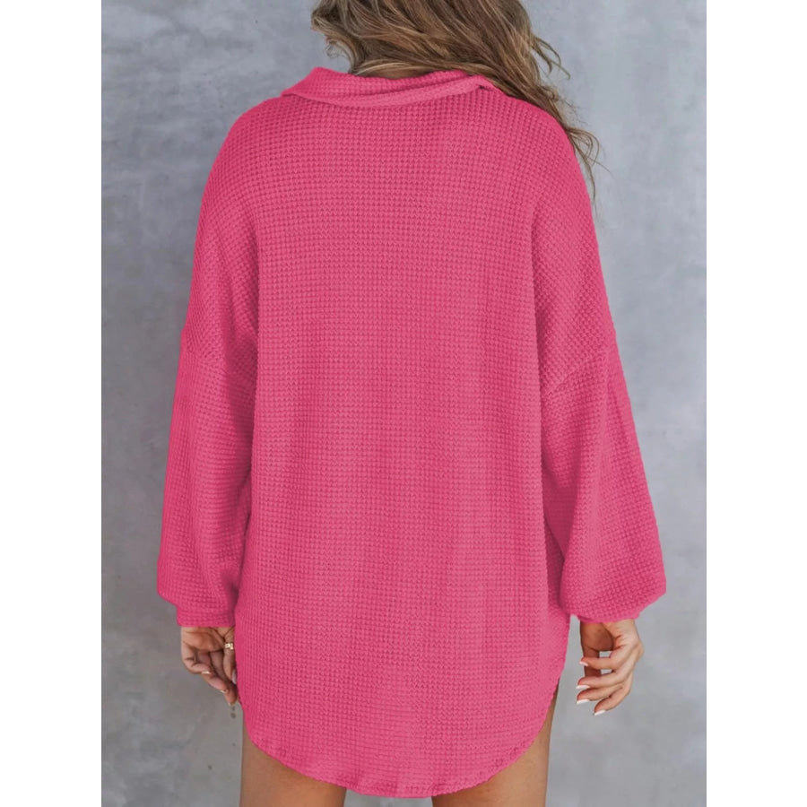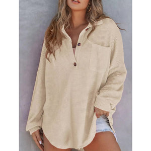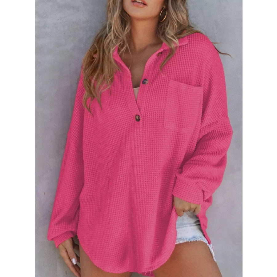 • Features:Waffle-Knit,Buttoned,Pocketed,Oversized