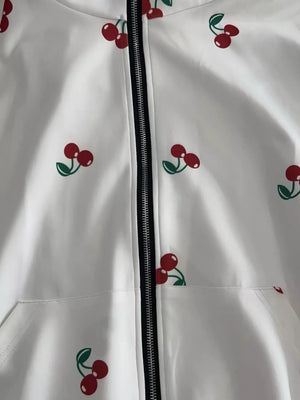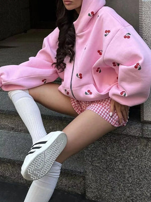 Cherry Print Oversized Zip-Up Hoodie