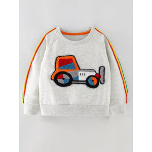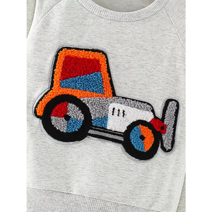 Children's Cartoon Tractor Crew Neck Sweatshirt