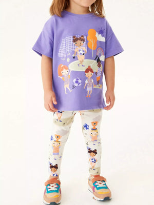 Children's Soccer Graphic Tee and Printed Leggings Set