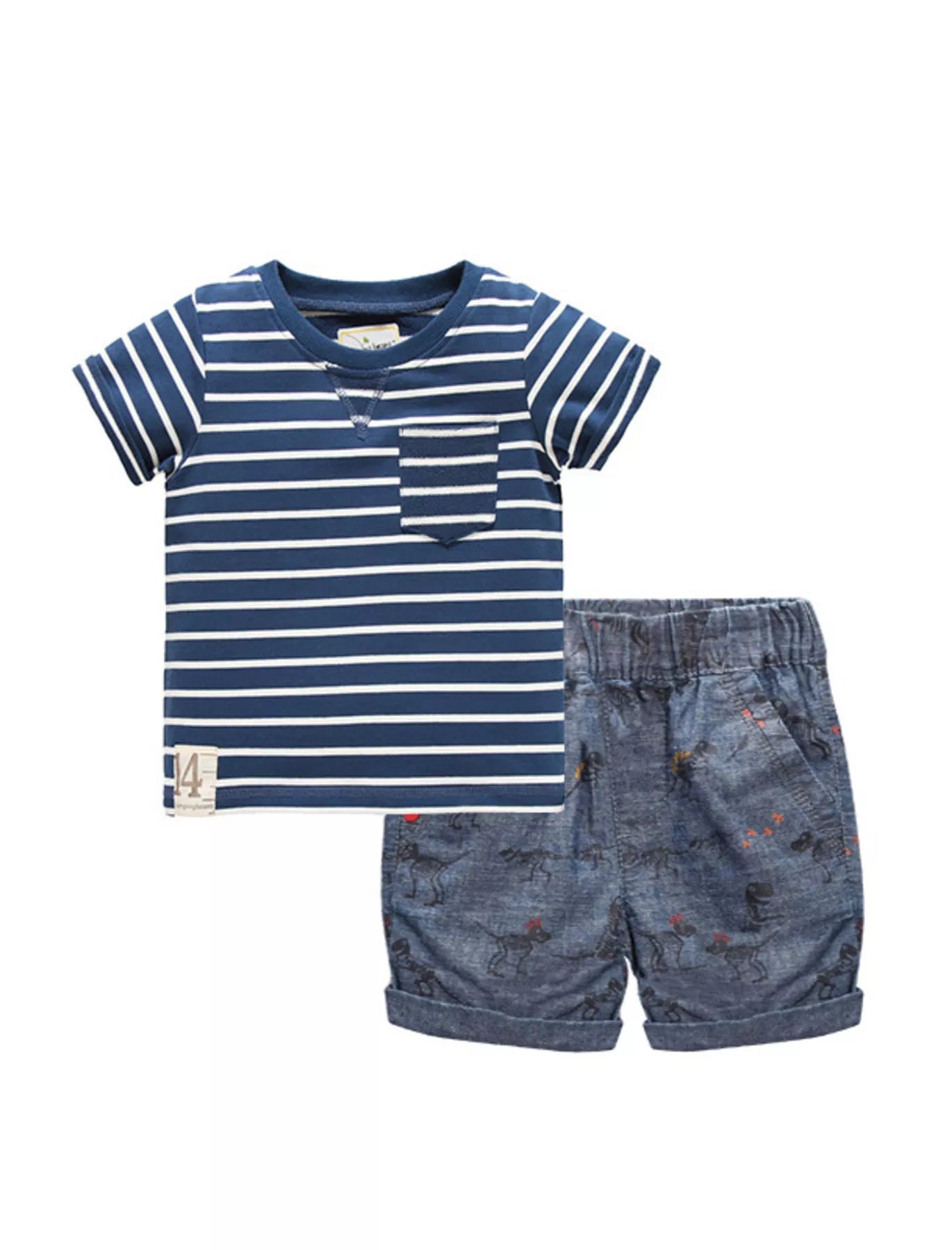 Children's Striped T-Shirt & Dinosaur Print Shorts Set