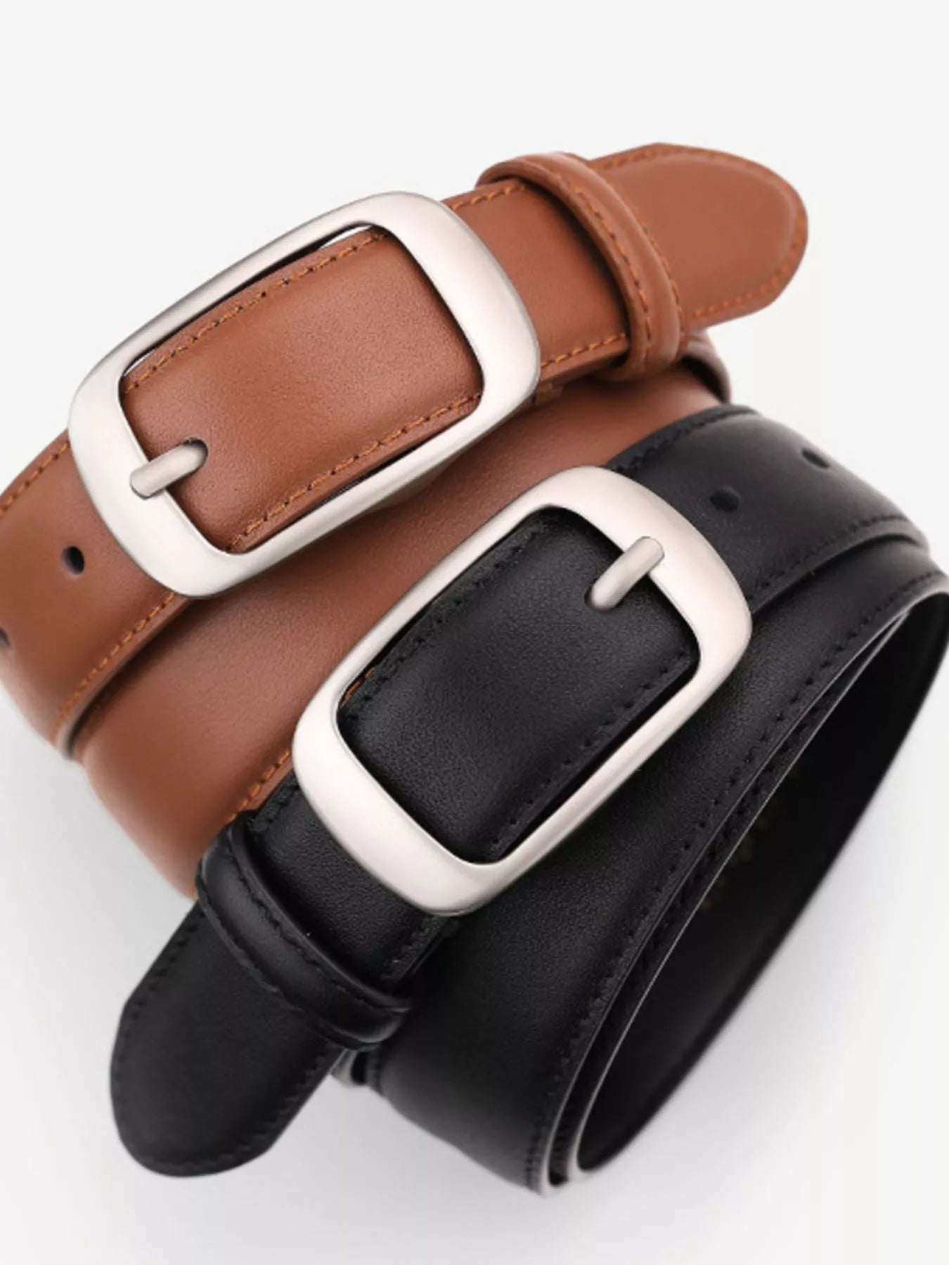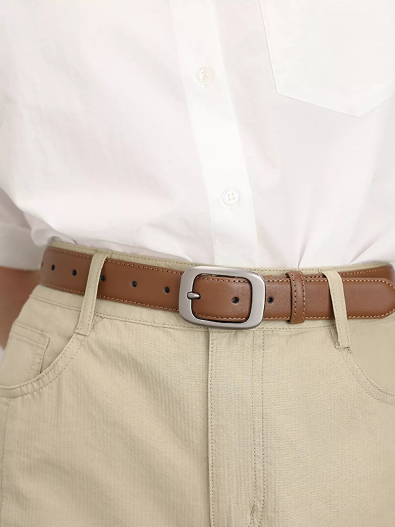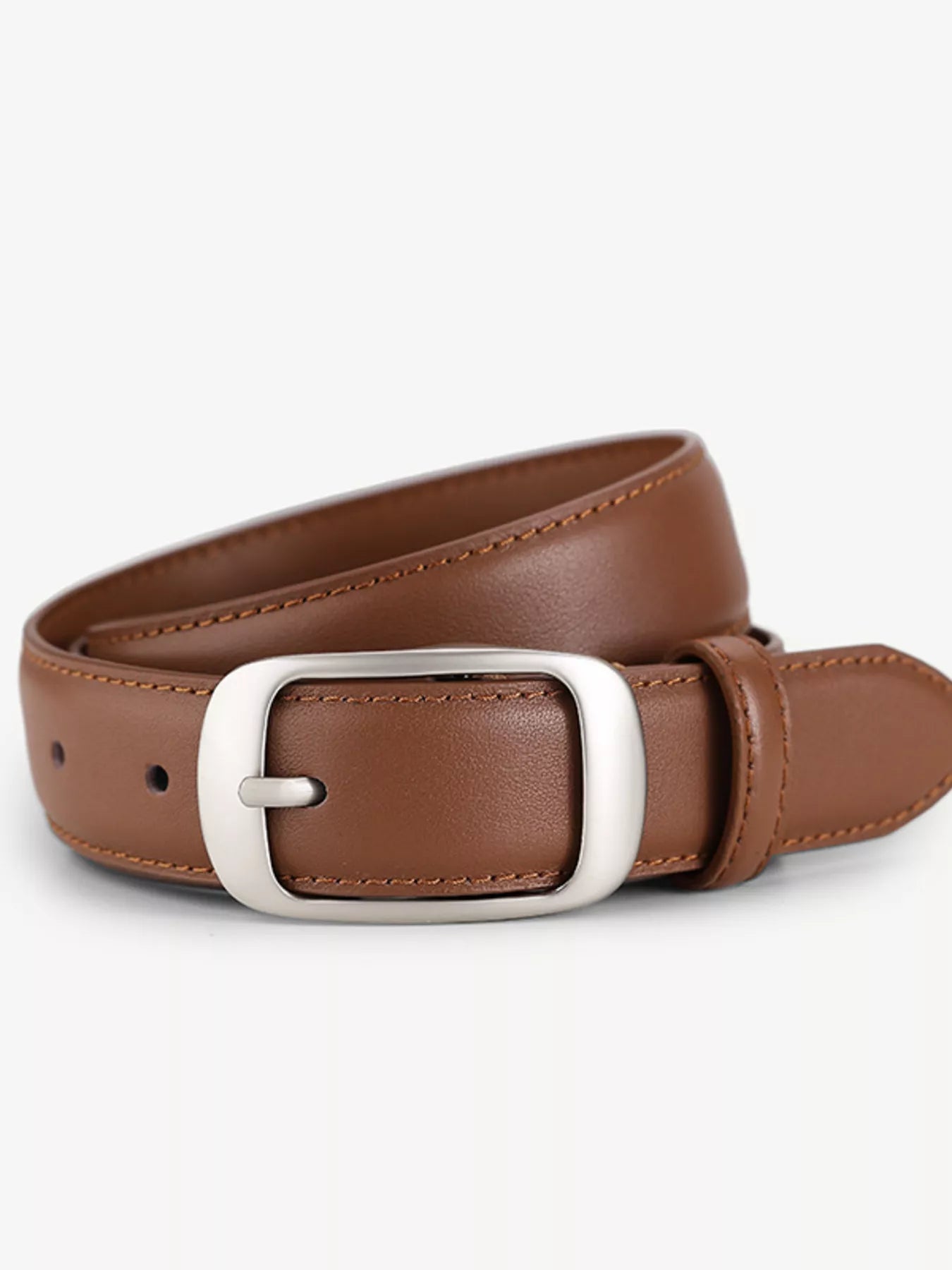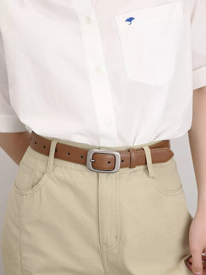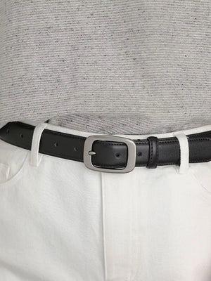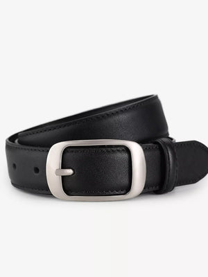 Classic Leather Belt with Silver Buckle