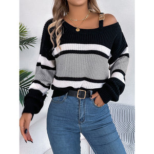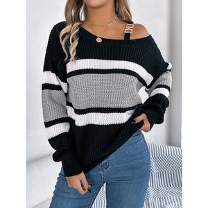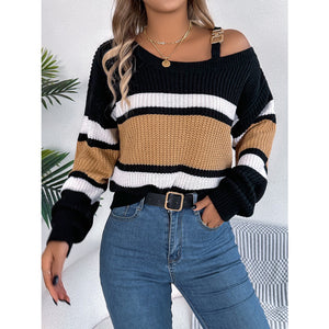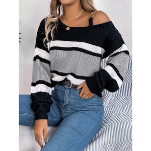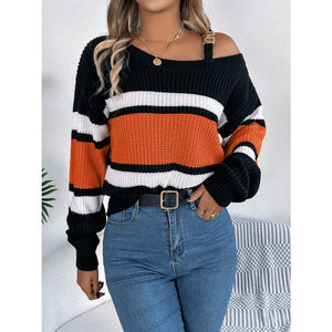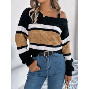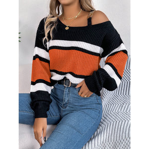 Color Block Asymmetrical Neck Long Sleeve Sweater