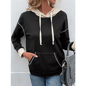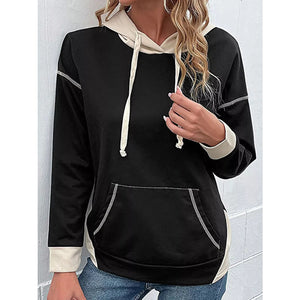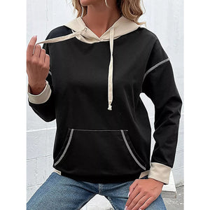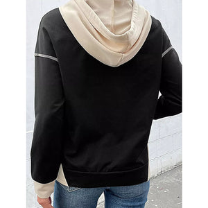 Color Block Hoodie with Drawstring and Kangaroo Pocket