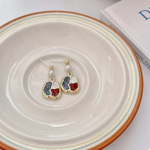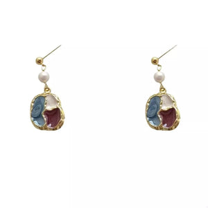 Color Block Pearl Drop Earrings