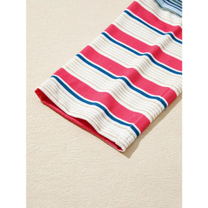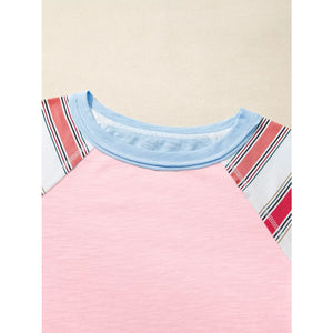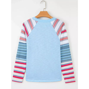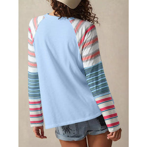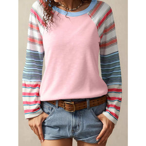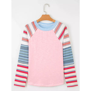 Color Block Round Neck Exposed Seam Patchwork Striped Long Sleeve Top