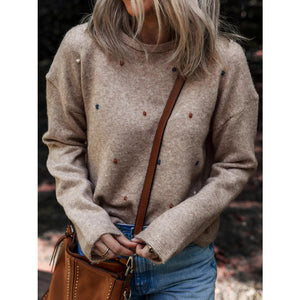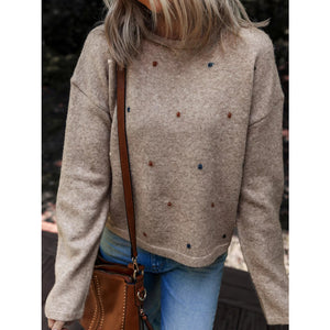 Contrast Colored Dot Detail Drop Shoulder Sweater