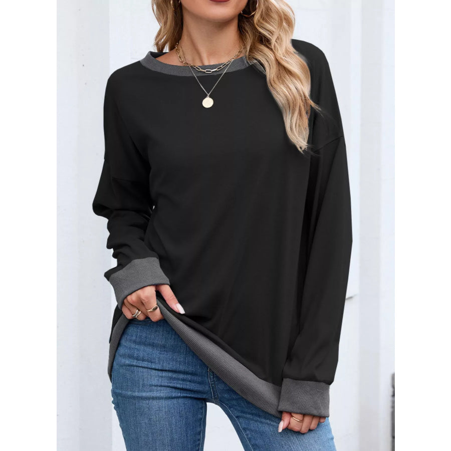 Contrast Trim Long Sleeve Sweatshirt