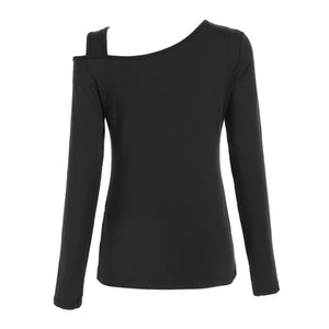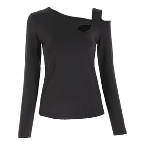 Cutout Asymmetrical Neck Long Sleeve T-Shirt