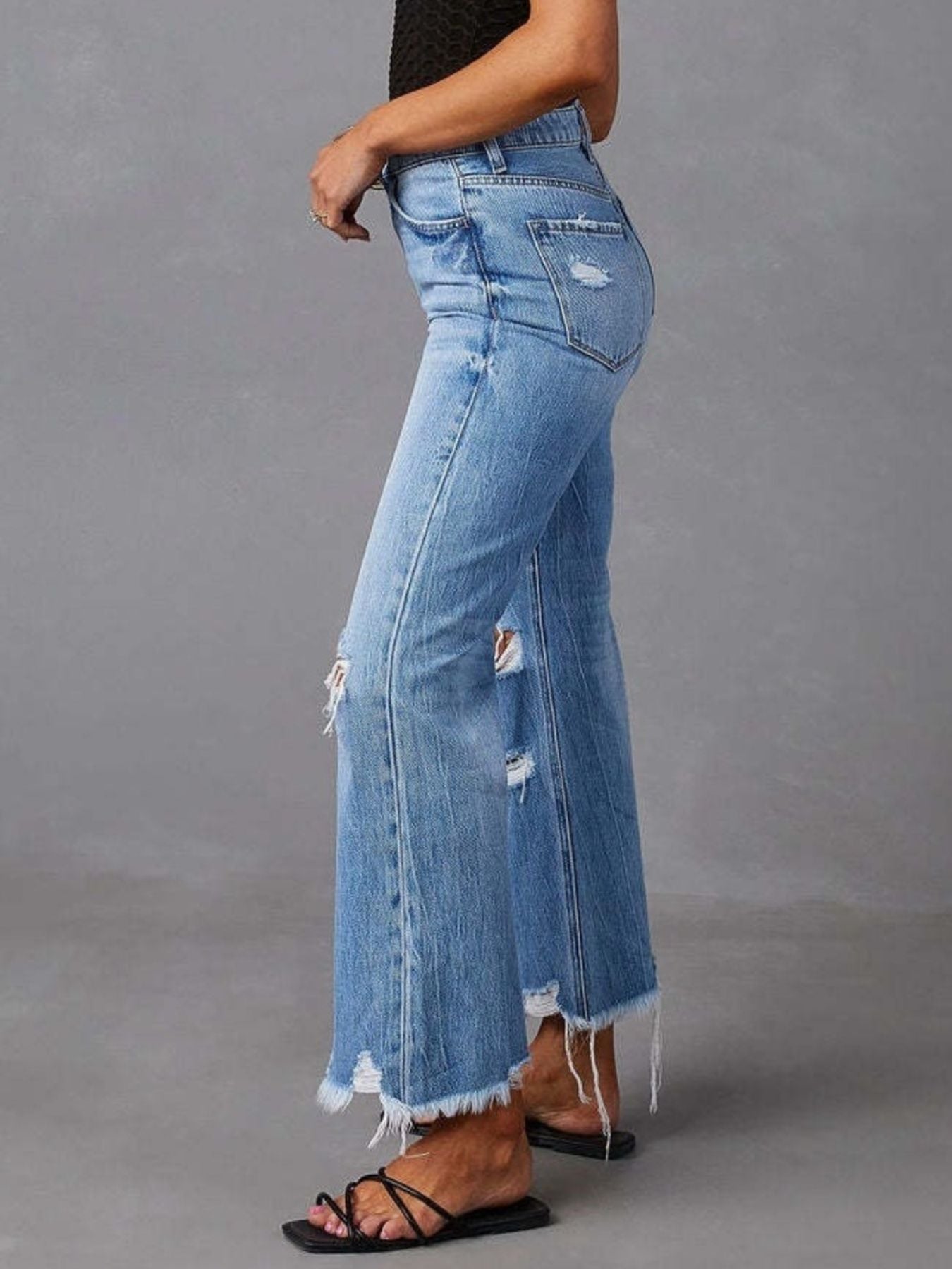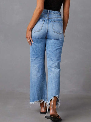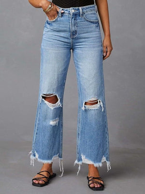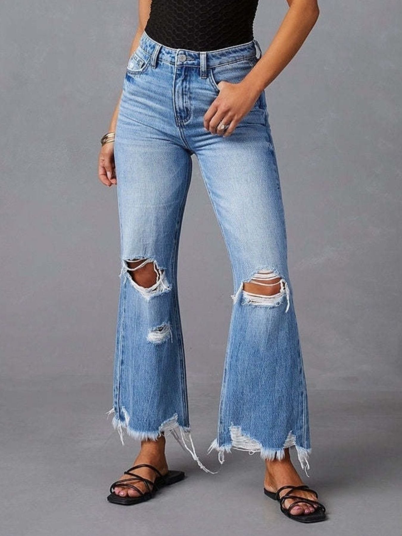 Distressed Raw Hem Flare Jeans