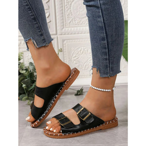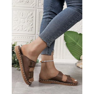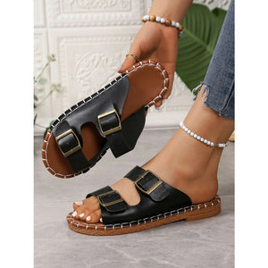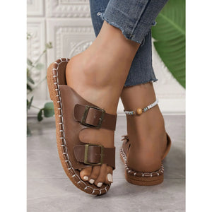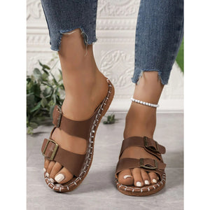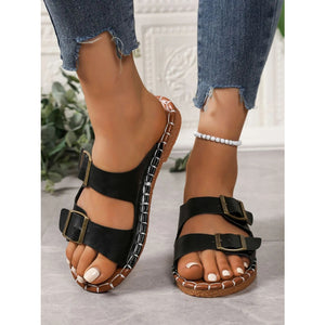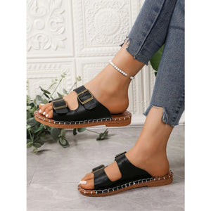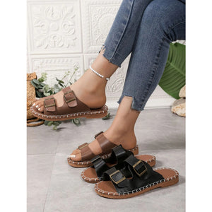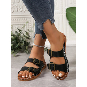 Double Buckle Strap Flat Sandals
